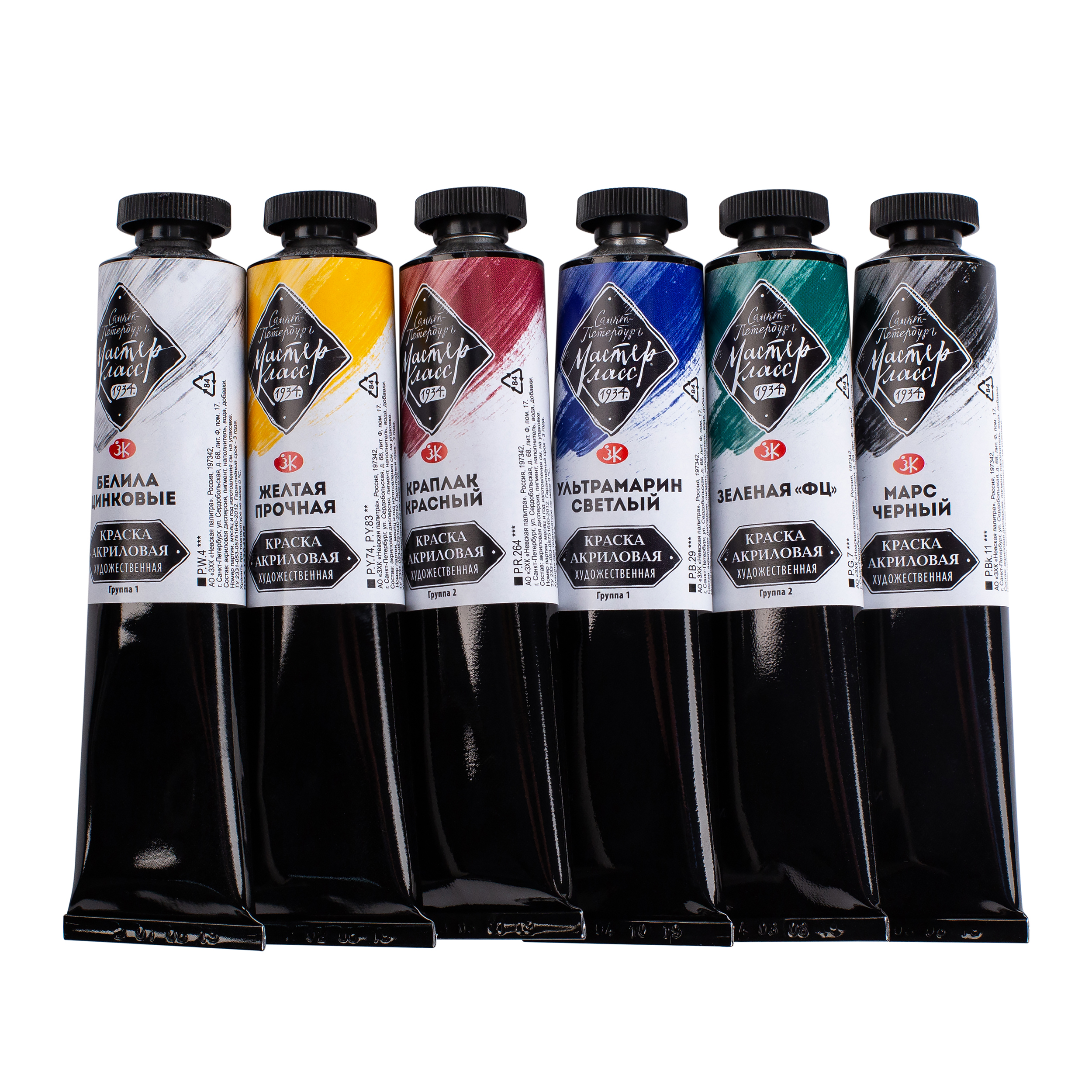 Художественные акриловые краски серии «мастер-класс» разработаны специально для профессиональных художников, в них соединились традиции производства с инновационными разработками. Высокая насыщенность пигментов и минимальное содержание наполнителей позволяют сохранить блеск, интенсивность и глубину цвета после высыхания, а тщательно сбалансированная основа придает краске богатую текстуру и корпусность. Краски можно использовать как для традиционной живописи, так и для дизайнерских работ, позволяя всегда добиваться превосходного результата. Набор состоит из 6 цветов в тубах по 46 мл.