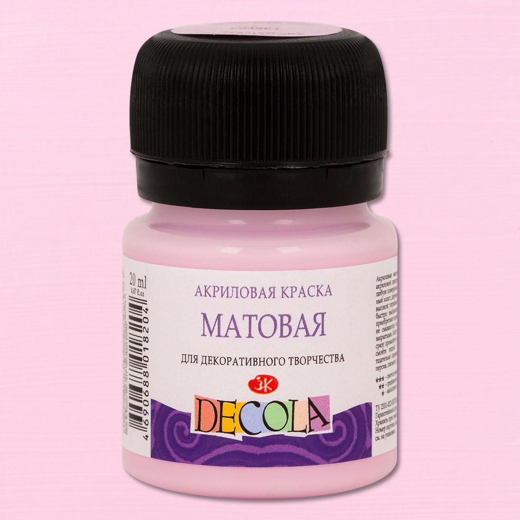 О серии: акрил Decola это современная акриловая краска для декоративного творчества. Палитра матового акрила Decola постоянно расширяется, на сегодняшний день в ней представлено около 30 различных цветов, которые выпускаются поштучно в баночках по 50 и 20 миллилитров и в наборах различной комплектации. Характеристика: акрил матовый Decola изготовлен на основе водной акриловой дисперсии. Для достижения художественных эффектов краски можно использовать в сочетании с медиумами и различными добавками. Все цвета хорошо смешиваются между собой и при необходимости разбавляются водой. После высыхания краска становится водостойкой и приобретает матовую поверхность. Применение: акриловые краски Decola подходят для работы на таких поверхностях, как бумага, холст, дерево, металл, стекло, кожа. Производство: глянцевый акрил Decola производится заводом художественных красок Невская палитра, расположенным в городе Санкт-Петербурге. Завод уже более 80 лет выпускает продукцию для профессиональных художников и любителей творчества.