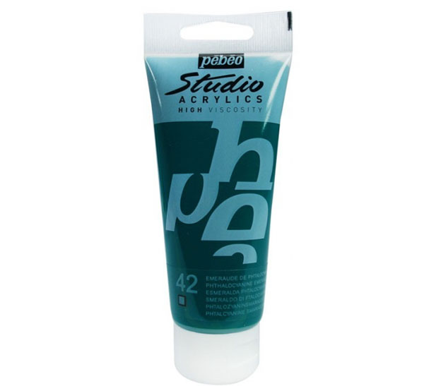 Акрил STUDIO – универсальная художественная краска, изготовленная с большим количеством пигмента и акриловой смолы. Легко наносится практически на любые обезжиренные поверхности (бумага, картон, холст, дерево, металл и другие материалы). Цвета можно смешивать между собой. При необходимости акрил разбавляется водой, но после высыхания образует прочную влагостойкую пленку. Благодаря своей структуре, при высыхании краска оставляет отпечатки кисти или мастихина. Обладает высокой покрывной способностью и светостойкостью. Акрил STUDIO представлен обширной цветовой палитрой из 63 цветов, в которую, помимо основных цветов вошли иридисцентные, металлические и флуоресцентные оттенки. Доступен поштучно в тубах по 100 миллилитров и в наборах различной комплектации. Акрил STUDIO («Студио») представлен французской торговой маркой «Pebeo» («Пебео»), которая была основана в 1919 году в пригороде Марселя. В настоящее время компания является крупным производителем художественных товаров и осуществляет поставки более чем в 100 стран.