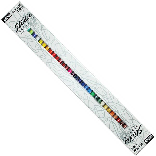 Набор акрила «STUDIO ACRYLICS» – это набор с универсальной художественной краской «STUDIO».Она изготавливается с большим количеством пигмента и акриловой смолы. Легко наносится практически на любые обезжиренные поверхности (бумага, картон, холст, дерево, металл и другие материалы). Цвета можно смешивать между собой. При необходимости акрил разбавляется водой, но после высыхания образует прочную влагостойкую пленку. Благодаря своей структуре, при высыхании краска оставляет отпечатки кисти или мастихина. Обладает высокой покрывной способностью и светостойкостью. Наборы акрила «STUDIO ACRYLICS» доступны в различной комплектации, в том числе с дополнительными аксессуарами. Набор акрила «STUDIO ACRYLICS» представлен французской торговой маркой «Pebeo» («Пебео»), которая была основана в 1919 году в пригороде Марселя. В настоящее время компания является крупным производителем художественных товаров и осуществляет поставки более чем в 100 стран.