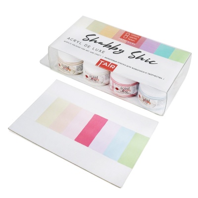 Краски «Акрил Де Люкс» — это акриловые краски приятной текучей консистенции, после высыхания образующие матовый слой. Палитра красок представлена нежными пастельными оттенками и существенно расширяет базовую цветовую гамму акриловых красок. Использовать «Акрил Де Люкс» для творчества можно и в качестве основной палитры, и как дополнение с другими акриловыми красками. Краски используются в живописи и декоративно-прикладном искусстве, они обладают высокой степенью укрывистости, не подвержены выцветанию. Преимущественно пастельная палитра, в сочетании со сложными глубокими оттенками потрясающе смотрятся в живописных работах. Красивая бархатистая поверхность, изысканные оттенки и возможность создавать плавные «акварельные» переходы — это только некоторые качества, за которые художники так любят эту линейку. Набор «Шебби Шик» — это гармоничное сочетание нежных пастельных оттенков. Светлая гамма придаст работе ощущение света, романтики, мягкого налёта старины: • Молочный коктейль • Слоновая кость тёплая • Апельсиновый мусс • Тосканский розовый • Клубничный пунш • Английская сирень • Нежное небо • Фисташковый Набор состоит из 8 баночек объёмом 20 мл. Широкое горлышко банки очень удобно для работы широкой кистью. Банки упакованы в прозрачную пластиковую коробку.