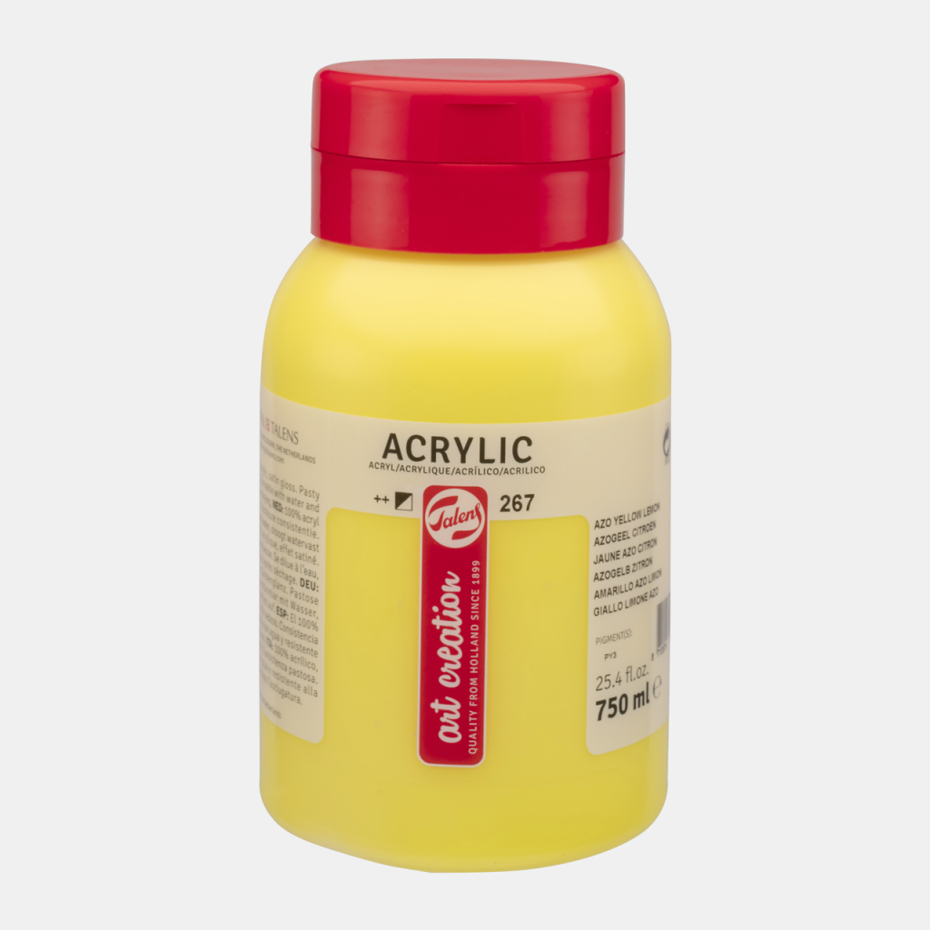 Акрил ART CREATION («Арт Криэйшен») производится в городе Апелдорн голландской компанией «ROYAL TALENS». Основал её Мартин Таленс (Marten Talens) в 1899 году. Титул «Royal» (Ройал, королевский) компания получила в 1949 году от королевской четы за высокое качество продукции и следование традициям. «ROYAL TALENS» производит все виды художественных красок и является одним из ведущих производителей в своей отрасли. Акрил ART CREATION – современная и уникальная краска, произведенная на основе 100% акриловой смолы. Краску можно использовать для работы на различных поверхностях - бумага, холст, дерево, камень. Акрил ART CREATION имеет густую пастообразную структуру, при необходимости разводится водой. Быстро сохнет. После высыхания краска становится водонепроницаемой. Акрил ART CREATION представлен богатой палитрой и выпускается поштучно в тубах по 750 миллилитров и в наборах различной комплектации.