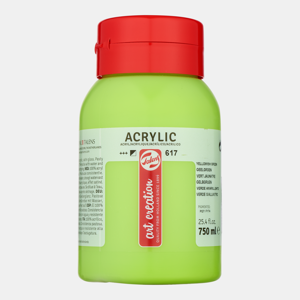 Акрил ART CREATION («Арт Криэйшен») производится в городе Апелдорн голландской компанией «ROYAL TALENS». Основал её Мартин Таленс (Marten Talens) в 1899 году. Титул «Royal» (Ройал, королевский) компания получила в 1949 году от королевской четы за высокое качество продукции и следование традициям. «ROYAL TALENS» производит все виды художественных красок и является одним из ведущих производителей в своей отрасли. Акрил ART CREATION – современная и уникальная краска, произведенная на основе 100% акриловой смолы. Краску можно использовать для работы на различных поверхностях - бумага, холст, дерево, камень. Акрил ART CREATION имеет густую пастообразную структуру, при необходимости разводится водой. Быстро сохнет. После высыхания краска становится водонепроницаемой. Акрил ART CREATION представлен богатой палитрой и выпускается поштучно в тубах по 750 миллилитров и в наборах различной комплектации.