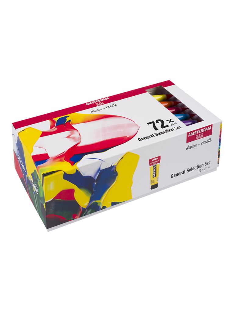 Акриловые краски серии AMSTERDAM от голландского производителя Royal Talens насчитывают в своей палитре 70 различных цветов и оттенков, способных удовлетворить потребности даже самого взыскательного художника. Все краски данной линейки на 100% состоят из акриловых смол, что обеспечивает им короткое время высыхания, а так же способствует появлению водонепроницаемой пленки на поверхности рисунка. Краски практически не обладают запахом, благодаря чему удобны в использовании как внутри помещения, так и на выставках, а так же отлично подходят для детского творчества. Яркость и насыщенность оттенков не теряется с годами, краски отличаются отличной светоустойчивостью, что обеспечивает длительный срок жизни картин в своём первозданном виде. Помимо высококачественных пигментов и смол, краски наделены особым связующим, что позволяет работать ими на любых поверхностях, не ограничивая тем самым личные предпочтения и творческий полет художника. Все краски отлично смешиваются между собой, что позволяет без труда добиться нужной консистенции и различных оттенков в процессе работы.