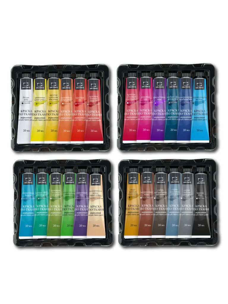 Набор акриловых красок по ткани Малевичъ, 24 цвета по 20 мл