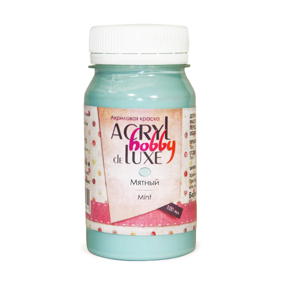 Акрил Hobby DeLuxe – краска на акриловой основе. Эта серия отличается от других большим количеством мягких пастельных оттенков и хорошей укрывистостью. Краска обладает слабовыраженным запахом, который исчезает при высыхании. Акрил Hobby DeLuxe хорошо подходит для декоративно-прикладных работ. Разбавляется водой или разбавителем акриловых красок. Красочный слой после высыхания становится водостойким и устойчивым к выцветанию. Hobby DeLuxe можно сочетать с другими акриловыми красками и акриловыми материалами (пасты, гели, различные добавки), что значительно расширяет художественные возможности. Акрил Hobby DeLuxe представлен палитрой из разнообразных пастельных оттенков. Все цвета выполнены с использованием 4-5 пигментов. Палитра цветов постоянно расширяется, и выпускаются новые оттенки. Акрил предлагается поштучно в баночках по 100 миллилитров. Акрил Hobby DeLuxe («Хобби Де Люкс») выпускается компанией «Таир», которая была основана в 1997 году в Санкт-Петербурге. Компания постоянно развивается и уже более 15 лет успешно работает на рынке художественных материалов.