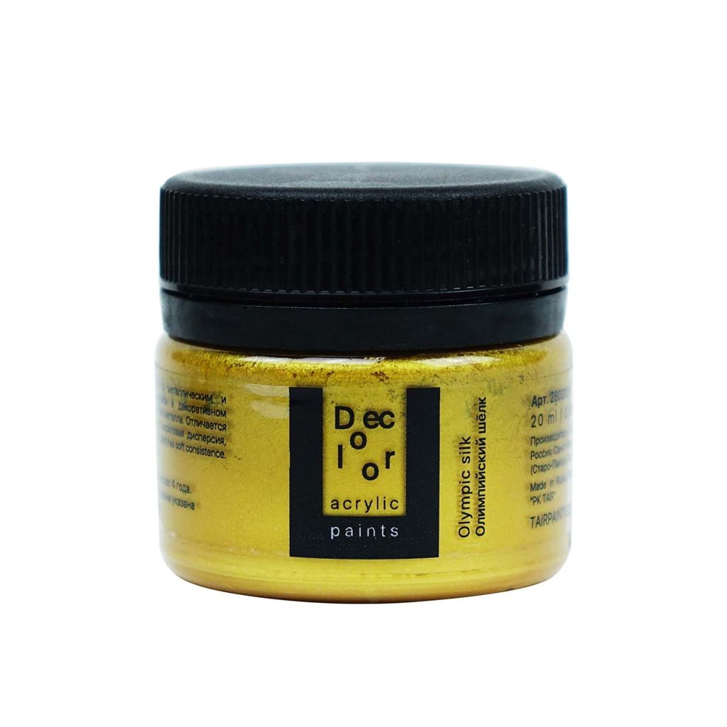 Художественные акриловые краски «Деколор» используются для имитации поверхности различных металлов. По консистенции — густые, приближенные к масляным краскам. Используются в живописных и декоративных техниках. Прекрасно подходят для объёмной живописи благодаря своим характеристикам и консистенции, а также успешно используются в техниках «сухой кисти», нанесении через трафарет, золочении элементов и т.д. Декоративные акриловые краски «Хамелеон» обладают перламутровым эффектом и прекрасно подходят для декора на любых поверхностях. Это полупрозрачная краска на акриловой основе, содержащая интерференционные пигменты. Интересный радужный эффект, который особенно заметен на тёмном фоне, можно использовать поверх нанесённого изображения в живописи, декупаже или любой другой технике. Консистенция: густая. Укрывистость: средняя. Состав: акриловая дисперсия, слюдяные пигменты, наполнитель, загуститель, консерванты, вода. Все цвета выполнены с использованием 4-5 пигментов. Свойства: ·Имеют эластичный и механически прочный красочный слой; ·Разбавляется водой, акриловым лаком, разбавителем акриловых красок и т.п.; ·После высыхания приобретает водостойкость; ·Устойчивы к атмосферному воздействию, не изменяют цвет в течение 10 лет; ·Хорошая сцепляемость с поверхностью; ·Время высыхания в течение одного часа; ·Смешиваются между собой в любых соотношениях для получения промежуточных оттенков; ·Не содержат металлов, не окисляются.