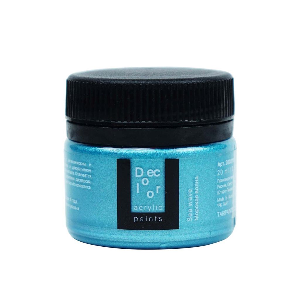 Художественные акриловые краски «Деколор» используются для имитации поверхности различных металлов. По консистенции — густые, приближенные к масляным краскам. Используются в живописных и декоративных техниках. Прекрасно подходят для объёмной живописи благодаря своим характеристикам и консистенции, а также успешно используются в техниках «сухой кисти», нанесении через трафарет, золочении элементов и т.д. Декоративные акриловые краски «Хамелеон» обладают перламутровым эффектом и прекрасно подходят для декора на любых поверхностях. Это полупрозрачная краска на акриловой основе, содержащая интерференционные пигменты. Интересный радужный эффект, который особенно заметен на тёмном фоне, можно использовать поверх нанесённого изображения в живописи, декупаже или любой другой технике. Консистенция: густая. Укрывистость: средняя. Состав: акриловая дисперсия, слюдяные пигменты, наполнитель, загуститель, консерванты, вода. Все цвета выполнены с использованием 4-5 пигментов. Свойства: ·Имеют эластичный и механически прочный красочный слой; ·Разбавляется водой, акриловым лаком, разбавителем акриловых красок и т.п.; ·После высыхания приобретает водостойкость; ·Устойчивы к атмосферному воздействию, не изменяют цвет в течение 10 лет; ·Хорошая сцепляемость с поверхностью; ·Время высыхания в течение одного часа; ·Смешиваются между собой в любых соотношениях для получения промежуточных оттенков; ·Не содержат металлов, не окисляются.