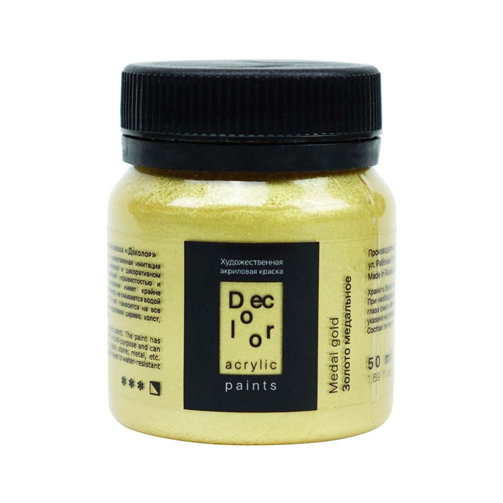 Акрил ДЕКОЛОР выпускается компанией «Таир», которая была основана в 1997 году в Санкт-Петербурге. Компания постоянно развивается и уже более 15 лет успешно работает на рынке художественных материалов. Акрил ДЕКОЛОР – смесь полиакрилатов и пигментов, вододисперсная вязкотекучая художественная краска. В серию красок ДЕКОЛОР вошли перламутровые и металлические оттенки. Краски хорошо ложатся на картон, древесину, гипс, камень, бетон и керамику. После высыхания образуют эластичную долговечную пленку, которая устойчива к воде и внешним воздействиям. Акрил ДЕКОЛОР может использоваться не только в декоративных и художественных целях, но и в реставрационных работах. Акрил ДЕКОЛОР представлен палитрой более 40 цветов, которые выпускаются поштучно в банках объемом по 50 и 100 миллилитров. Дизайн упаковки и этикетки товара может отличаться в зависимости от поставки.