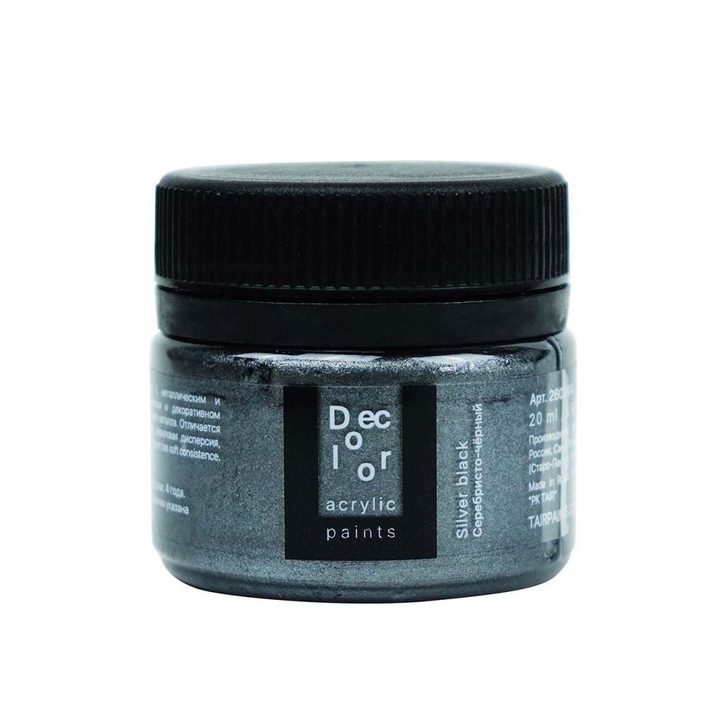 Художественные акриловые краски «Деколор» используются для имитации поверхности различных металлов. По консистенции — густые, приближенные к масляным краскам. Используются в живописных и декоративных техниках. Прекрасно подходят для объёмной живописи благодаря своим характеристикам и консистенции, а также успешно используются в техниках «сухой кисти», нанесении через трафарет, золочении элементов и т.д. Декоративные акриловые краски «Хамелеон» обладают перламутровым эффектом и прекрасно подходят для декора на любых поверхностях. Это полупрозрачная краска на акриловой основе, содержащая интерференционные пигменты. Интересный радужный эффект, который особенно заметен на тёмном фоне, можно использовать поверх нанесённого изображения в живописи, декупаже или любой другой технике. Консистенция: густая. Укрывистость: средняя. Состав: акриловая дисперсия, слюдяные пигменты, наполнитель, загуститель, консерванты, вода. Все цвета выполнены с использованием 4-5 пигментов. Свойства: ·Имеют эластичный и механически прочный красочный слой; ·Разбавляется водой, акриловым лаком, разбавителем акриловых красок и т.п.; ·После высыхания приобретает водостойкость; ·Устойчивы к атмосферному воздействию, не изменяют цвет в течение 10 лет; ·Хорошая сцепляемость с поверхностью; ·Время высыхания в течение одного часа; ·Смешиваются между собой в любых соотношениях для получения промежуточных оттенков; ·Не содержат металлов, не окисляются.