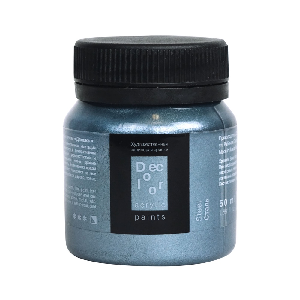 Акрил ДЕКОЛОР выпускается компанией «Таир», которая была основана в 1997 году в Санкт-Петербурге. Компания постоянно развивается и уже более 15 лет успешно работает на рынке художественных материалов. Акрил ДЕКОЛОР – смесь полиакрилатов и пигментов, вододисперсная вязкотекучая художественная краска. В серию красок ДЕКОЛОР вошли перламутровые и металлические оттенки. Краски хорошо ложатся на картон, древесину, гипс, камень, бетон и керамику. После высыхания образуют эластичную долговечную пленку, которая устойчива к воде и внешним воздействиям. Акрил ДЕКОЛОР может использоваться не только в декоративных и художественных целях, но и в реставрационных работах. Акрил ДЕКОЛОР представлен палитрой более 40 цветов, которые выпускаются поштучно в банках объемом по 50 и 100 миллилитров. Дизайн упаковки и этикетки товара может отличаться в зависимости от поставки.
