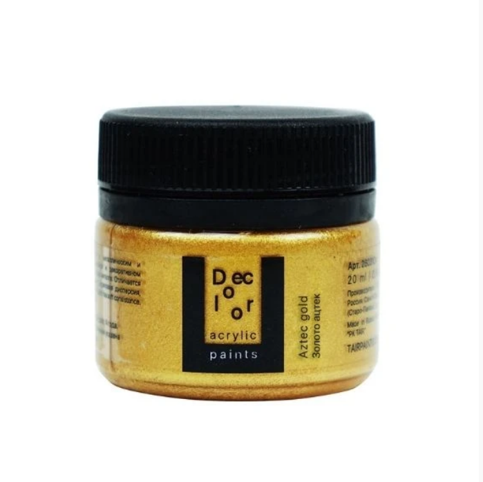 Художественные акриловые краски «Деколор» используются для имитации поверхности различных металлов. По консистенции — густые, приближенные к масляным краскам. Используются в живописных и декоративных техниках. Прекрасно подходят для объёмной живописи благодаря своим характеристикам и консистенции, а также успешно используются в техниках «сухой кисти», нанесении через трафарет, золочении элементов и т.д. Декоративные акриловые краски «Хамелеон» обладают перламутровым эффектом и прекрасно подходят для декора на любых поверхностях. Это полупрозрачная краска на акриловой основе, содержащая интерференционные пигменты. Интересный радужный эффект, который особенно заметен на тёмном фоне, можно использовать поверх нанесённого изображения в живописи, декупаже или любой другой технике. Консистенция: густая. Укрывистость: средняя. Состав: акриловая дисперсия, слюдяные пигменты, наполнитель, загуститель, консерванты, вода. Все цвета выполнены с использованием 4-5 пигментов. Свойства: ·Имеют эластичный и механически прочный красочный слой; ·Разбавляется водой, акриловым лаком, разбавителем акриловых красок и т.п.; ·После высыхания приобретает водостойкость; ·Устойчивы к атмосферному воздействию, не изменяют цвет в течение 10 лет; ·Хорошая сцепляемость с поверхностью; ·Время высыхания в течение одного часа; ·Смешиваются между собой в любых соотношениях для получения промежуточных оттенков; ·Не содержат металлов, не окисляются.