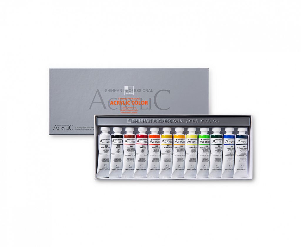 О серии: акриловые краски SHINHAN ACRYLIC COLOR PRO профессионального качества. Краски обладают всеми наилучшими качествами акрила - отлично ложатся на любую поверхность, обладают яркими насыщенными цветами, быстро высыхают на поверхности, при этом сохраняют свою эластичность. Тщательно подобранные пигменты растёртые до мелкодисперсного состояния позволяют создавать новые цветовые решения путем смешения красок, а так же обеспечивают отличную светостойкость, надолго сохраняя готовую работу в первозданном виде. Плотная консистенция красок позволяет работать в технике импасто. Состав набора: №562 titanium white (белила титановые), №560 black (черный), №553 burnt sienna (сиена жженая), №503 carmine (кармин), №505 vermilion hue (киноварь тон), №551 yellow ochre (охра желтая), №515 permanent yellow deep (желтый насыщенный устойчивый), №517 lemon yellow (желтый лимонный), №526 permanent green light (зеленый светлый устойчивый), №530 viridian hue (виридиан тон), №538 cobalt blue hue (синий кобальт тон), №540 phthalocyanine blue (синий фталоцианин). Применение: широко используются в графике, архитектурном дизайне и живописных работах. Производство: компания из Южной Кореи «ShinHan Art International Inc» славится своей продукцией, предназначенной для иллюстраторов, аниматоров, дизайнеров и архитекторов. Компания была основана в 1967 году и на тот момент называлась «Haneel». Сегодня «ShinHan Art International Inc» славится во всем мире превосходным качеством своей продукции. Особенностью данной марки является внимание к деталям и дизайну. Применение современных технологий и следование традициям производства, позволяют создавать эргономичные, удобные и сверхнадежные канцелярские принадлежности. Продукция компании используются в различных сферах и популярна среди профессиональных художников, а также любителей творчества и хобби.