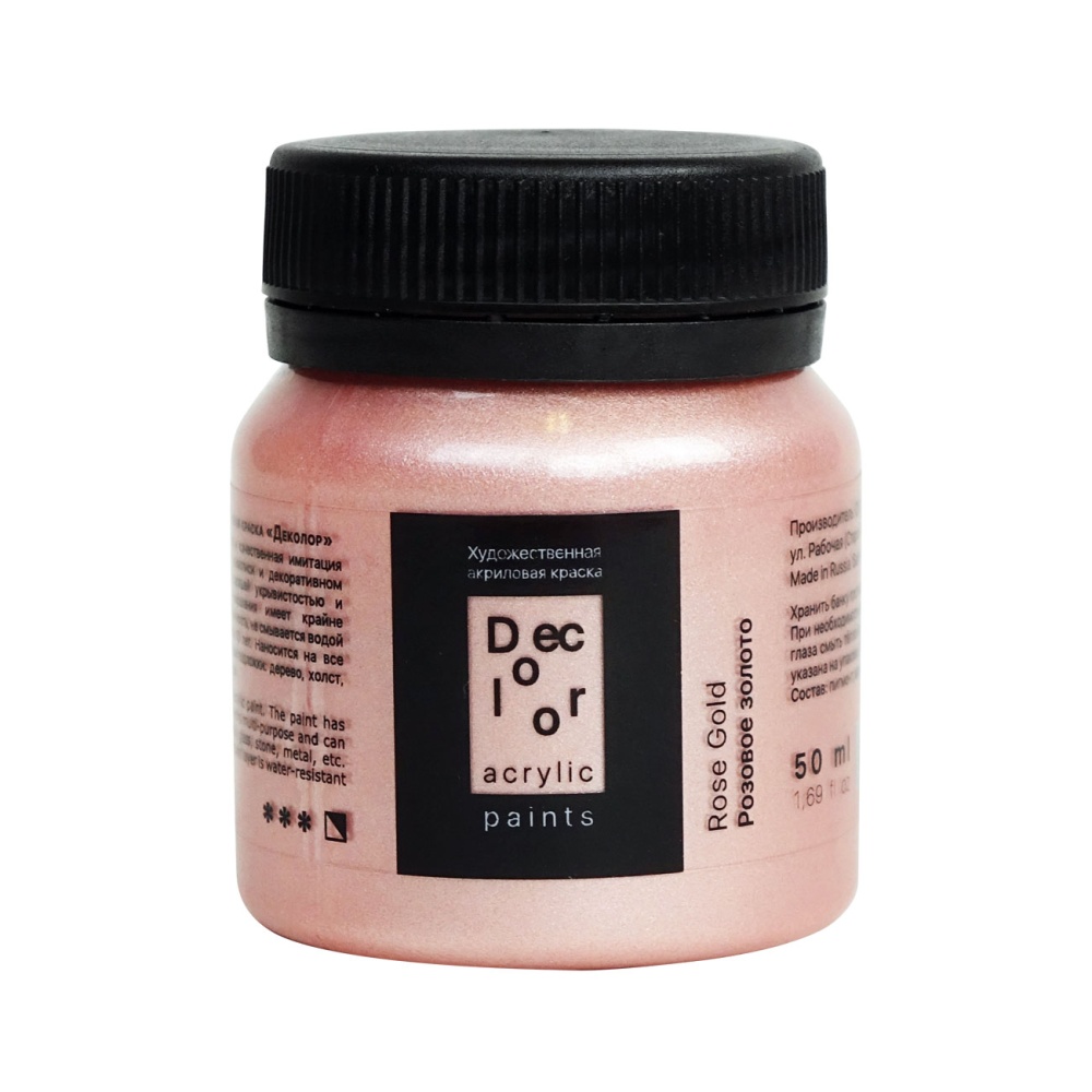 Акрил ДЕКОЛОР выпускается компанией «Таир», которая была основана в 1997 году в Санкт-Петербурге. Компания постоянно развивается и уже более 15 лет успешно работает на рынке художественных материалов. Акрил ДЕКОЛОР – смесь полиакрилатов и пигментов, вододисперсная вязкотекучая художественная краска. В серию красок ДЕКОЛОР вошли перламутровые и металлические оттенки. Краски хорошо ложатся на картон, древесину, гипс, камень, бетон и керамику. После высыхания образуют эластичную долговечную пленку, которая устойчива к воде и внешним воздействиям. Акрил ДЕКОЛОР может использоваться не только в декоративных и художественных целях, но и в реставрационных работах. Акрил ДЕКОЛОР представлен палитрой более 40 цветов, которые выпускаются поштучно в банках объемом по 50 и 100 миллилитров. Дизайн упаковки и этикетки товара может отличаться в зависимости от поставки.
