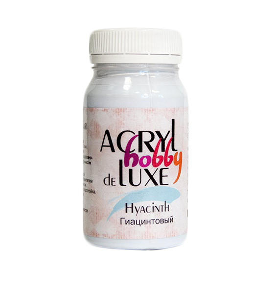 Акрил Hobby DeLuxe – краска на акриловой основе. Эта серия отличается от других большим количеством мягких пастельных оттенков и хорошей укрывистостью. Краска обладает слабовыраженным запахом, который исчезает при высыхании. Акрил Hobby DeLuxe хорошо подходит для декоративно-прикладных работ. Разбавляется водой или разбавителем акриловых красок. Красочный слой после высыхания становится водостойким и устойчивым к выцветанию. Hobby DeLuxe можно сочетать с другими акриловыми красками и акриловыми материалами (пасты, гели, различные добавки), что значительно расширяет художественные возможности. Акрил Hobby DeLuxe представлен палитрой из разнообразных пастельных оттенков. Все цвета выполнены с использованием 4-5 пигментов. Палитра цветов постоянно расширяется, и выпускаются новые оттенки. Акрил предлагается поштучно в баночках по 100 миллилитров. Акрил Hobby DeLuxe («Хобби Де Люкс») выпускается компанией «Таир», которая была основана в 1997 году в Санкт-Петербурге. Компания постоянно развивается и уже более 15 лет успешно работает на рынке художественных материалов.
