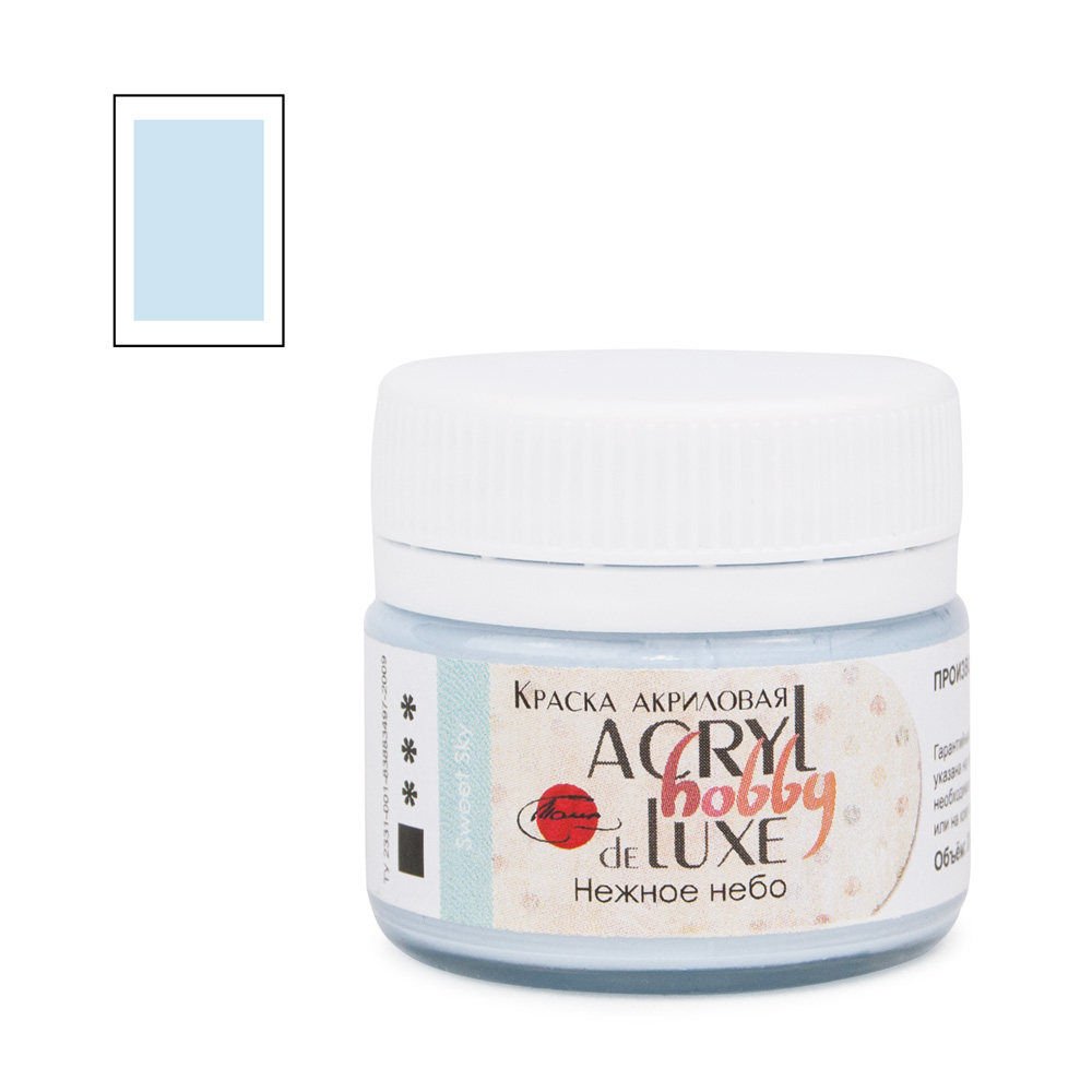 Художественные акриловые краски «Акрил Де Люкс» обладают кремовой консистенцией и потрясающим матовым финишем. Благодаря этому свойству краски напоминают по своим характеристикам меловые. Разнообразная и уникальная палитра красок позволяет создавать неповторимые работы и тратить меньше времени на получение нестандартного оттенка. Краска прекрасно подходят для живописи, декоративно-прикладного искусства и окрашивания любых поверхностей. Хорошая сцепляемость практически со всеми свободными от жира подложками. Консистенция: кремовая, текучая. Укрывистость: от средней до высокой. Состав: акриловая дисперсия, тонкодисперсные пигменты, наполнитель, консерванты, вода. Все цвета выполнены с использованием 4-5 пигментов. Свойства: • Высокоматовый, бархатистый красочный слой; • После высыхания приобретает водостойкость; • Высокий уровень светостойкости; • Хорошая сцепляемость с поверхностью; • Разбавляется водой, акриловым лаком, разбавителем акриловых красок и т.п.; • Время высыхания в течение одного часа; • При длительном хранении допускается частичное расслоение, перед употреблением обязательно перемешать.
