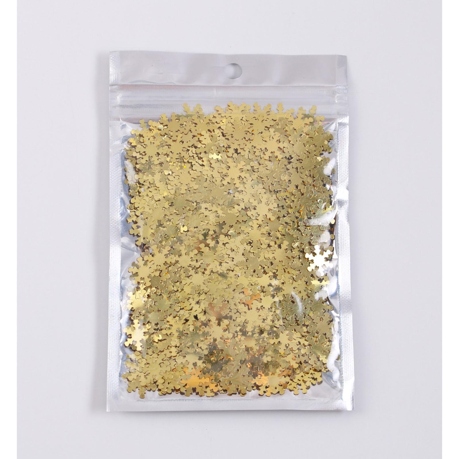 Декоративный наполнитель из мелких элементов в форме снежинок поможет украсить подарок или дополнить праздничное оформление вашего дома.