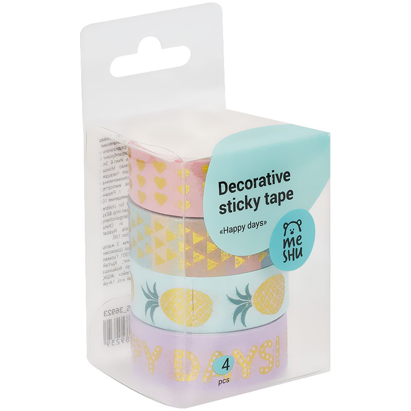 Декоративные клейкие ленты MESHU предназначены для упаковки подарков, оформления поделок, элементов интерьера и скрапбукинга. Открытки, альбомы, ежедневники, подставки, цветочные горшки, подсвечники, рамки и много другое может преобразиться с декоративными лентами MESHU. Яркие и современные дизайны сделают процесс творчества увлекательным, а результат впечатляющим. А качественная клеевая основа позволит надежно зафиксировать ленту и быть уверенным в долговечности декора.