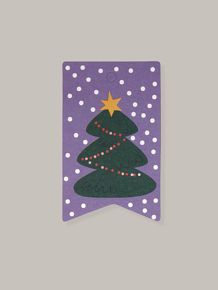Бирка — это отличный способ обозначить адресата, для которого предназначен подарок. Бирка выполнена из плотной дизайнерской бумаги. На передней стороне бирки атмосферная новогодняя иллюстрация, а на обратной стороне есть место для подписи и пожеланий.