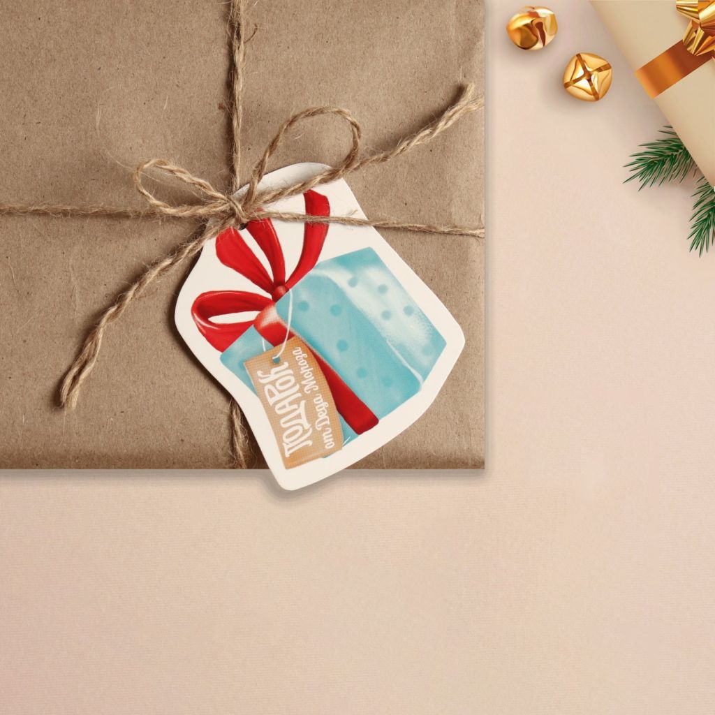 Шильдик с оригинальным дизайном станет лаконичным дополнением к подарку на Новый Год. Бирка выполнена из дизайнерской бумаги, на обратной стороне вы можете написать коротенькие пожелания или имя адресата.