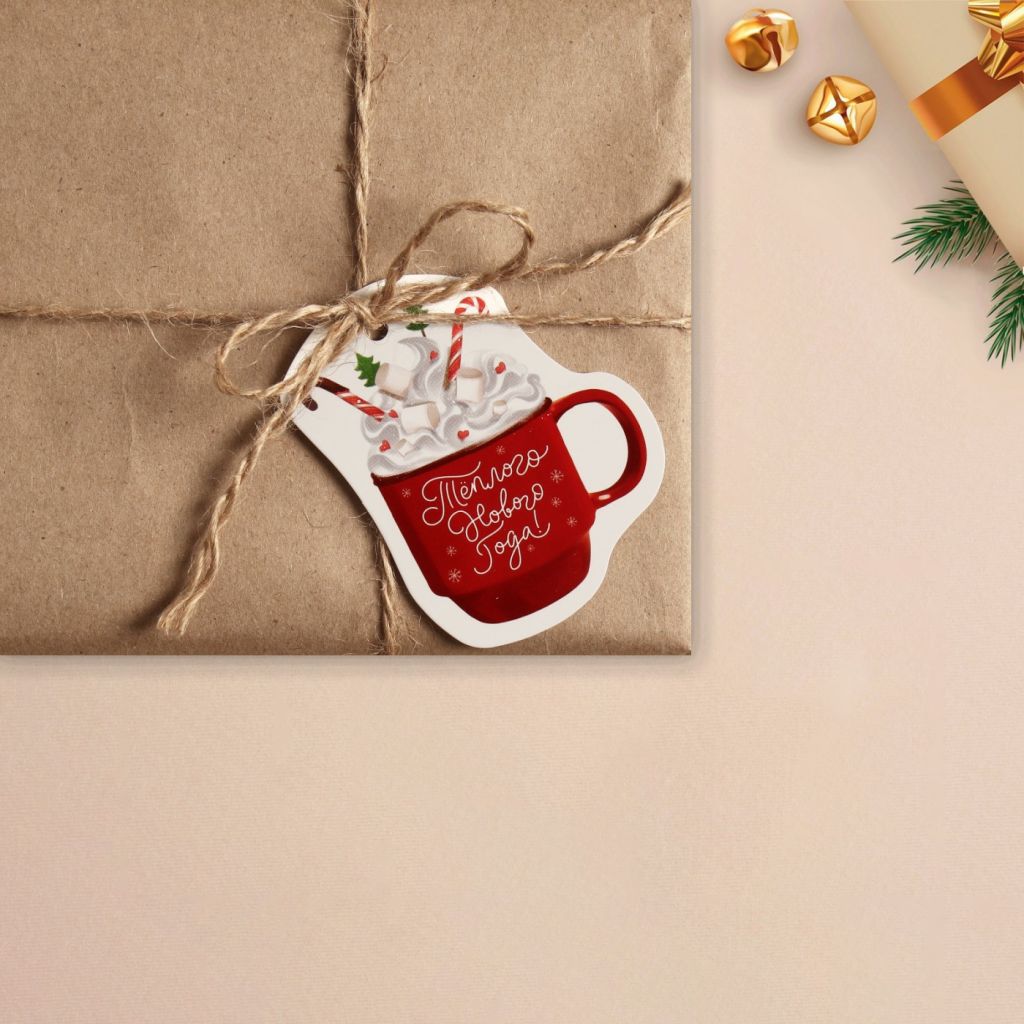 Шильдик с оригинальным дизайном станет лаконичным дополнением к подарку на Новый Год. Бирка выполнена из дизайнерской бумаги, на обратной стороне вы можете написать коротенькие пожелания или имя адресата.