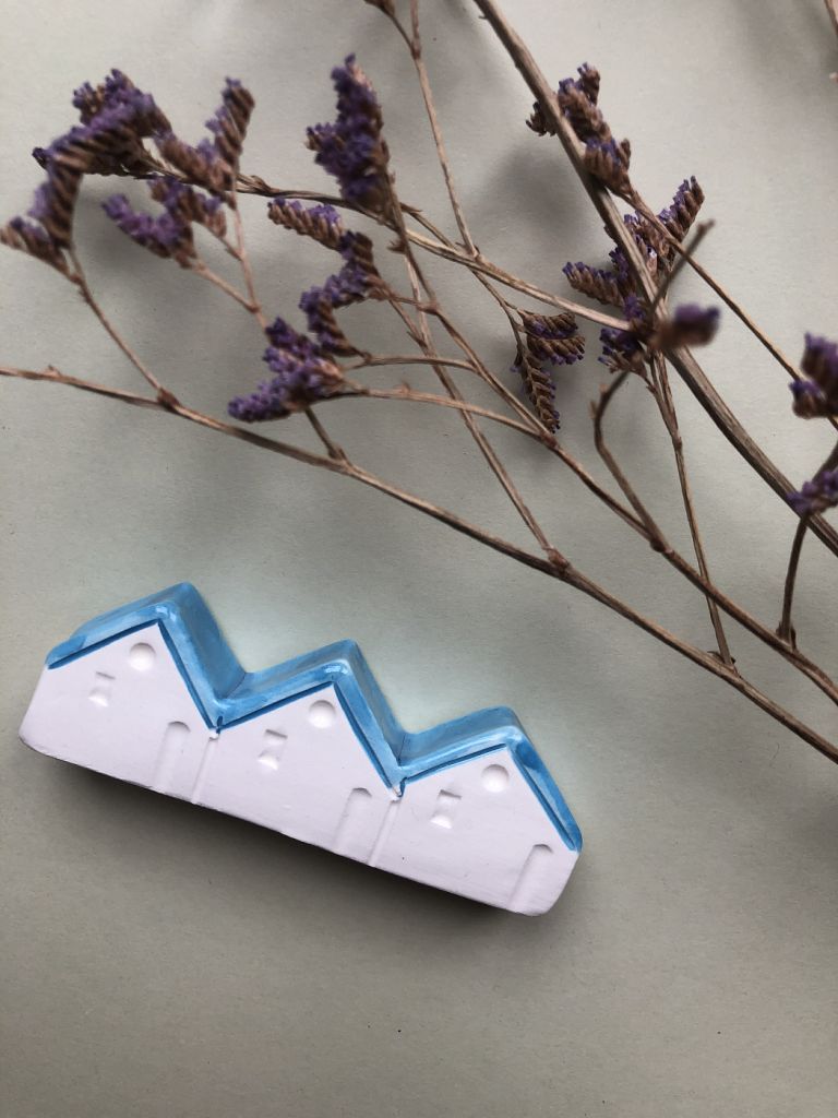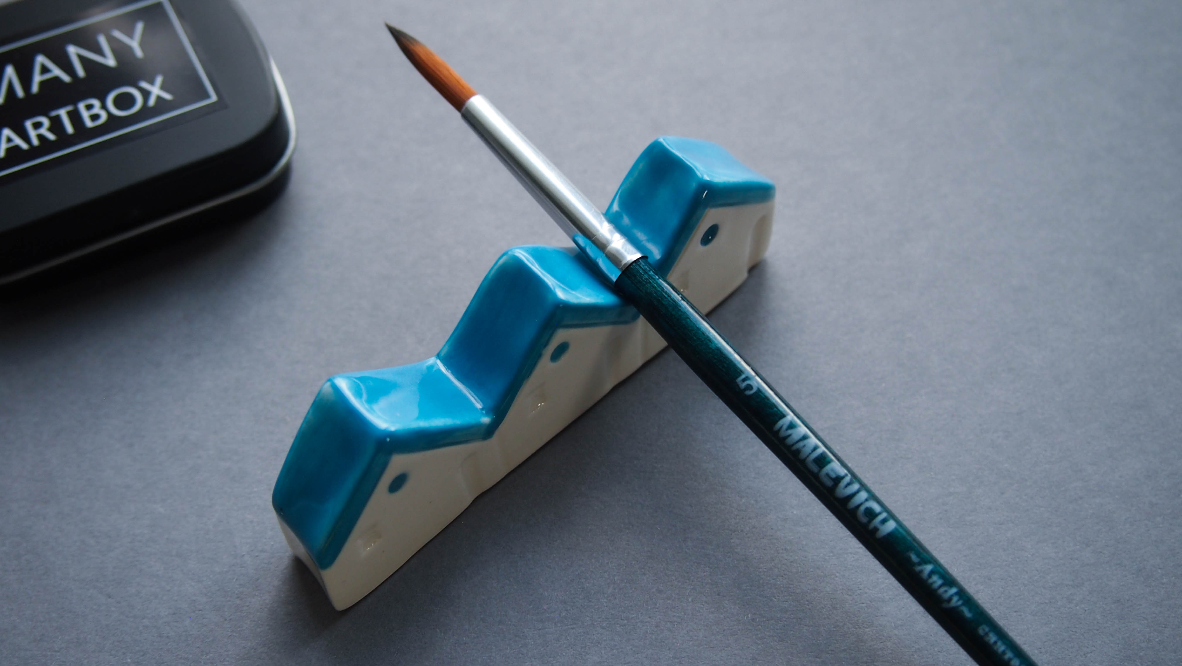 Керамическая подставка в виде нескольких домиков станет не только прекрасным украшением вашего рабочего стола, но и незаменимым аксессуаром при работе с красками. Подставка имеет небольшие углубления, которые не позволяют кистям скатываться на рабочую поверхность.