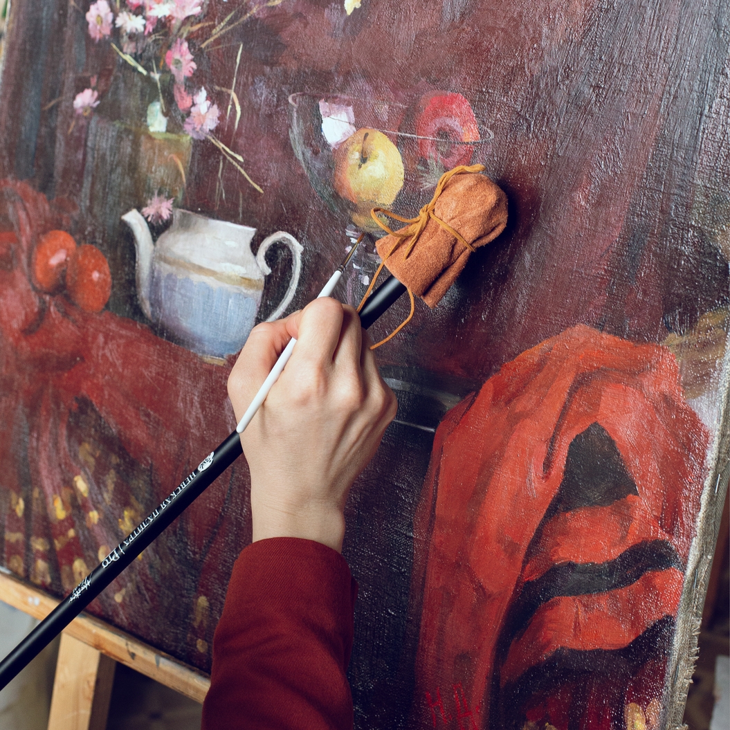 Муштабель «Мастер-Класс» — незаменимый помощник для художников, стремящихся к высокой точности в проработке мелких деталей. Он служит опорой для руки, помогая стабилизировать её положение и избежать дрожания при тонкой, кропотливой работе. Регулируемая длина: от 47 до 91 см — удобно подстраивается под формат холста и рабочее место. Прочная металлическая основа — долговечность и стабильность при использовании. Наконечник из дерева — надёжно фиксируется на холсте, не повреждая его поверхность. Установите деревянный наконечник муштабеля на край холста или мольберта, чтобы зафиксировать опору. Другой конец (палку) удерживайте рукой и используйте как направляющую или опору для кисти. Это позволяет снизить нагрузку на руку, избежать дрожания и добиться более чётких линий при работе с деталями.