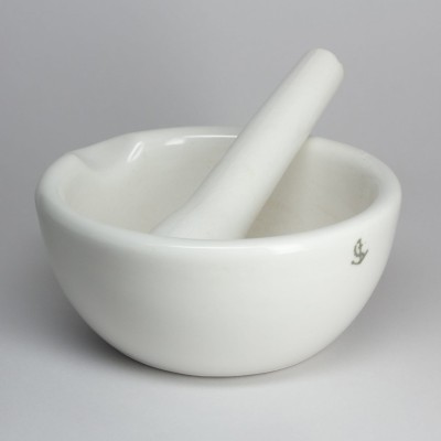 Ступка фарфоровая с пестиком и выливной кромкой. Прекрасно подходит для быстрого перетирания и дотирания сухого пигмента с твёрдостью до 6 баллов по Шкале Моосу. Ступка с пестиком из фарфора для измельчения сыпучих пигментов - древнейшее изобретение, придуманное ещё средневековыми алхимиками, для измельчения фракций всевозможных веществ. Материал фарфор, из которого изготовлена посуда не отслаивается в процессе механического растирания, что гарантирует абсолютную чистоту измельчённого продукта без попадания частиц ступки. Для более эффективного растирания, внутренняя поверхность ступки не покрывается глазурью.
