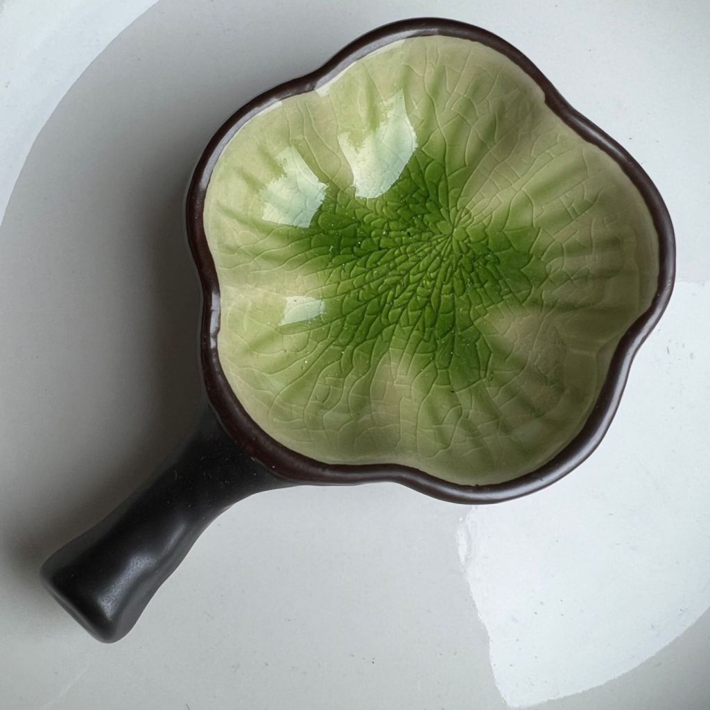 Стильная, удобная тушечница выполнена из фарфора в форме цветка, покрыта цветной эмалью с эффектом кракле, благодаря чему не впитывает пигменты и легко моется. Предназначена для работы с сухой и жидкой тушью. Благодаря аутентичному дизайну тушечница станет настоящим украшением рабочего стола и гармонично впишется в вашу коллекцию инструментов для каллиграфии. Для максимального удобства в работе тушечница оснащена ручкой-подставкой для кисти. Диаметр изделия 7,5 см.