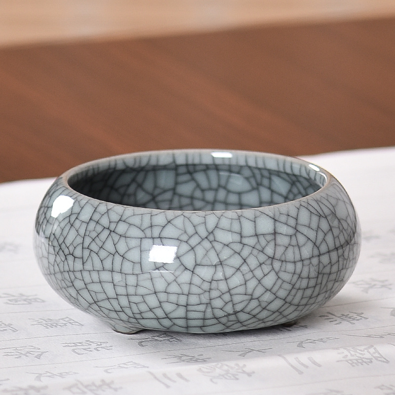 Чаша изготовлена из фарфора и покрыта селадоном, особым типом глазури, изобретённом в древнем Китае, в провинции Чжэцзян. Такая чаша может использоваться для воды или туши, благодаря глазури, она не впитывает пигменты и красители и легко отмывается. Размеры чаши: высота 4.3 см., внешний диаметр 9.5 см., внутренний диаметр 7.5 см.