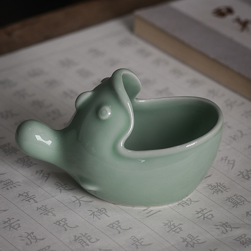 Фарфоровая тушечница в форме рыбы в аутентичном дизайне станет не только полезным аксессуаром, но и настоящим украшением вашего рабочего стола и ярким пополнением вашей коллекции китайских инструментов для живописи и каллиграфии. Длина тушечницы 13.7 см, высота 8.5 см, глубина 7.8 см.