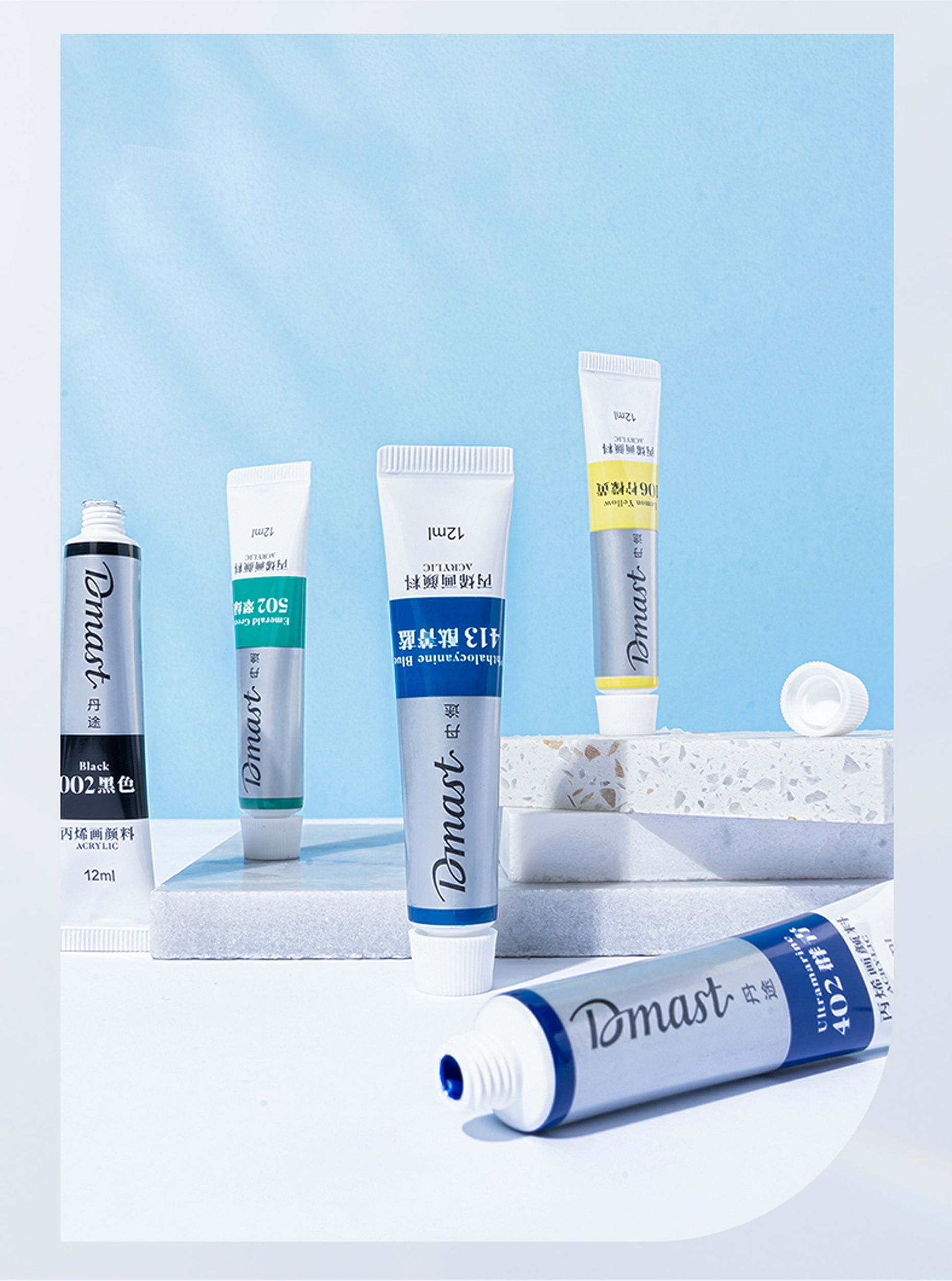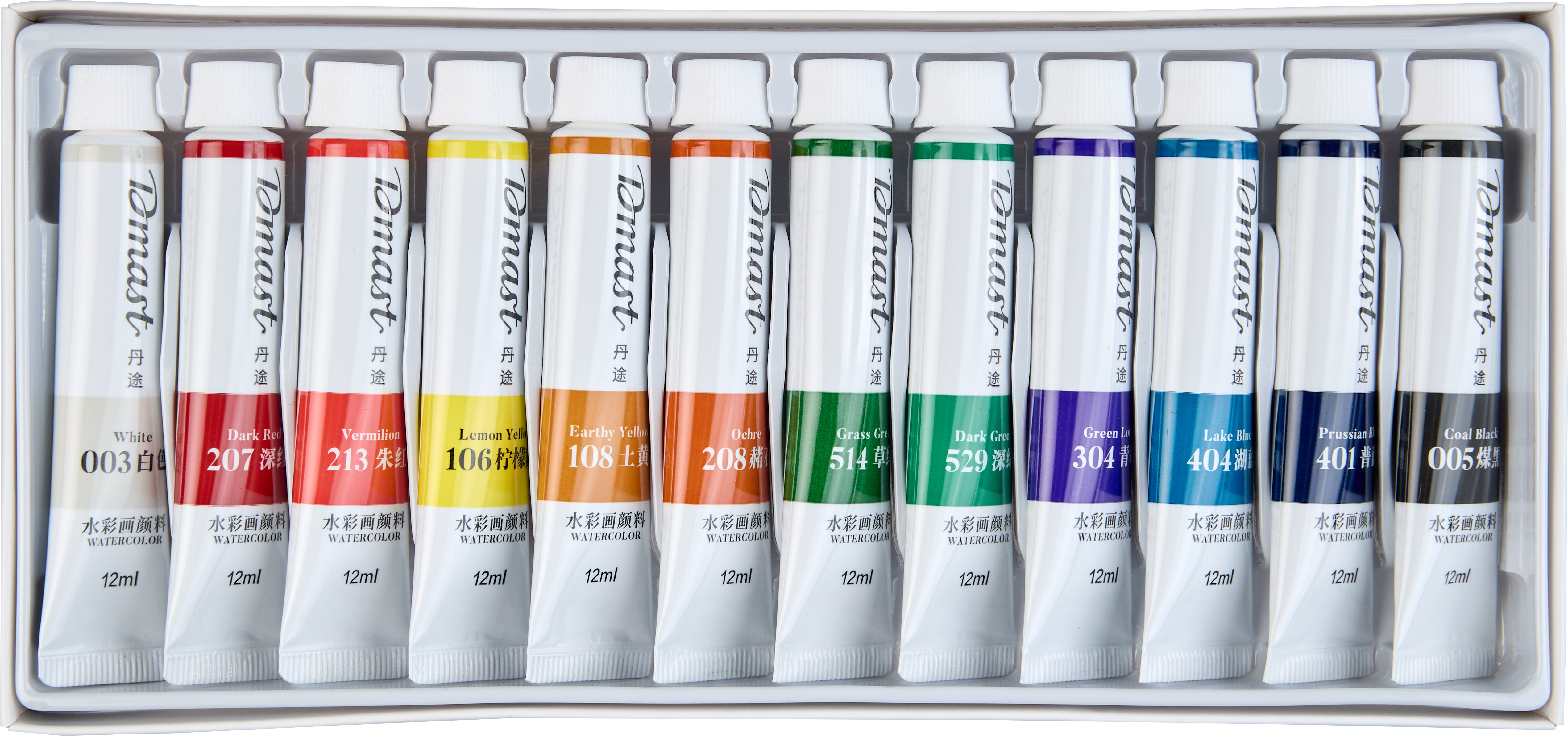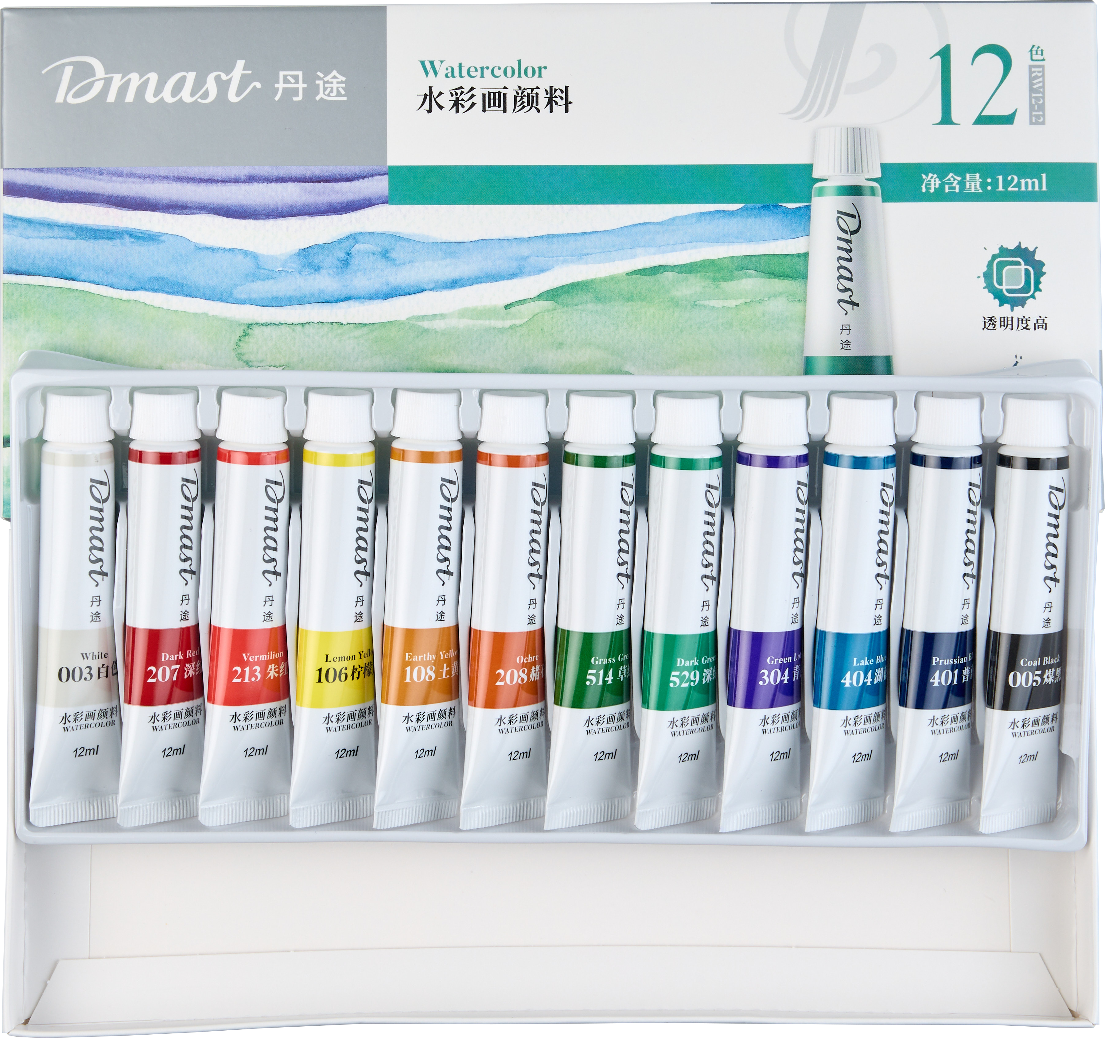 Акварель Dmast произведена из натурального гуммиарабика и пигментов тончайшего помола — размер частиц менее 1 микрона. Краски Dmast имеют чистые прозрачные цвета и высокую светостойкость. Каждая партия проходит экспертизу в лаборатории цвета на соответствие эталону. Упаковка набора произведена из прочного картона с покрытием Soft-touch. Внутри упаковки пластиковые подложки для раздельного хранения туб и легкого доступа к ним. Тубы произведены из плотного пластика с удобной крышкой. Продукция бренда Dmast создана благодаря сочетанию высокого качества выверенных технологий бренда Pebeо и инновационным производственным процессам компании Deli — крупнейшего производителя канцелярских товаров в Азии.