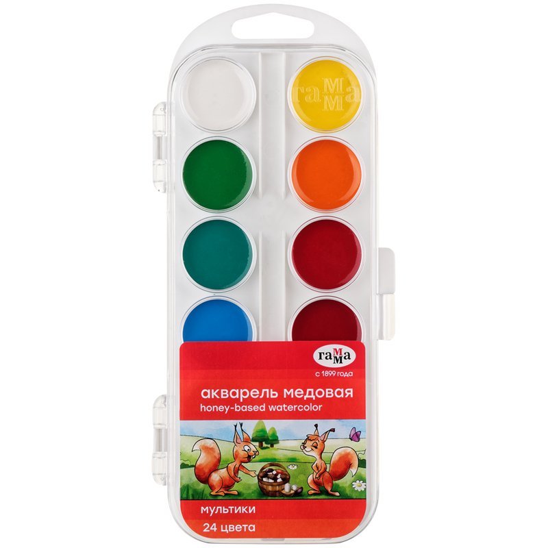 О серии: акварель «Мультики» разработана специально для детского творчества. Краски произведены из качественных пигментов и связующего на основе медосодержащих компонентов. Выпускается в наборах с разным количеством цветов. Производство: выпускаются российской компанией «Гамма», которая уже более 100 лет экспериментирует с пигментами, производит художественные краски и другие товары для творчества. Характеристика: краски легко набираются на кисть и хорошо разносятся по бумаги. Применение: для художественных работ. Подходит для детей дошкольного и школьного возраста.