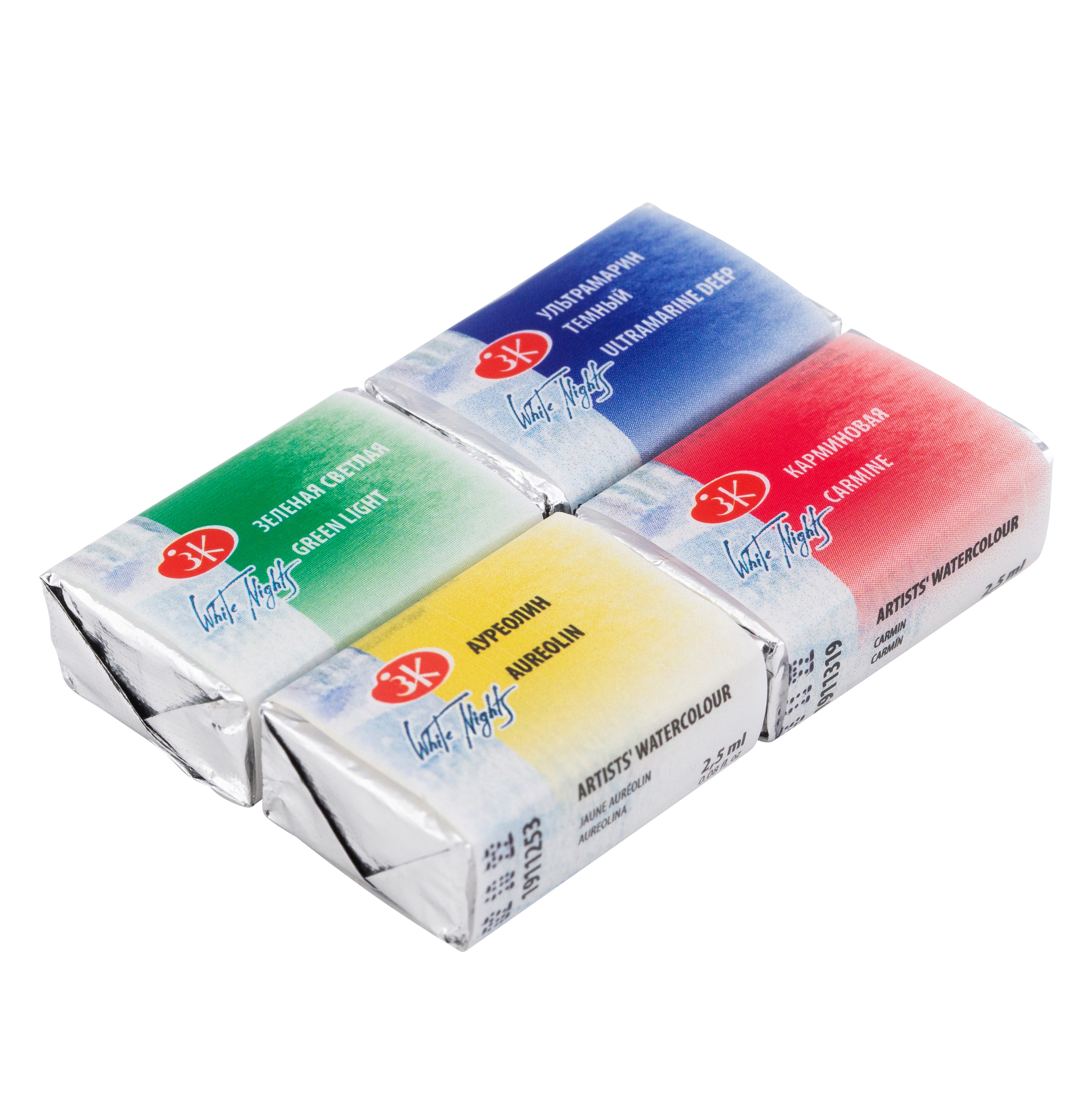 Акварель «Белые ночи» — визитная карточка завода «Невская палитра», эти краски признаны профессиональными художниками и считаются одними из лучших среди отечественных акварелей. Художественные акварельные краски «Белые ночи» изготавливаются из тонкотертых пигментов и связующего из натурального гуммиарабика, признанного лучшим растительным клеем для приготовления художественных водных красок. Максимальная интенсивность цветового тона акварели, сохраняющаяся даже при разбавлении большим количеством воды, достигается благодаря высокой концентрации пигмента и тонкости его перетира. Такие свойства, как яркость и чистота цвета, высокая светостойкость, прекрасная разносимость и прозрачность сделали акварель ЗХК любимыми красками нескольких поколений живописцев. Цвета в наборе: зелёная светля, ультрамарин тёмный, ауреолин, карминовая.