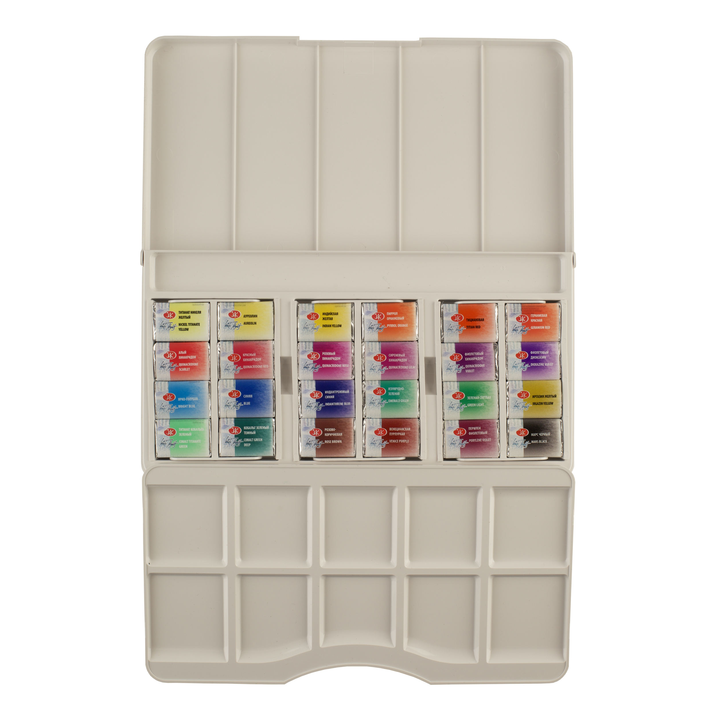 Набор акварельных красок "Новейшая история" идеально подходит для художников, стремящихся к созданию акварельных работ в современном стиле. Набор включает в себя богатую палитру монопигментных светостойких красок, основанных на пигментах синтезированных в XX веке. Особенности: Новый взгляд на базовый набор современного акварелиста. Высокое качество пигментов: краски насыщены пигментами высшего качества, обеспечивающими яркость, насыщенность и стойкость цветов. Превосходная смешиваемость: цвета легко смешиваются между собой, позволяя художникам создавать широчайший спектр чистых оттенков. Идеально для: Профессиональных художников: отличный выбор для тех, кто ищет готовое решение для современных акварельных работ. Студентов и преподавателей: идеальный инструмент для красок и современной колористической теории. Любителей: легкий способ получать чистые акварельные смеси. Набор акварельных красок "Белые Ночи" "Новейшая история" поможет вам создать выразительные и реалистичные работы с различными сюжетами.