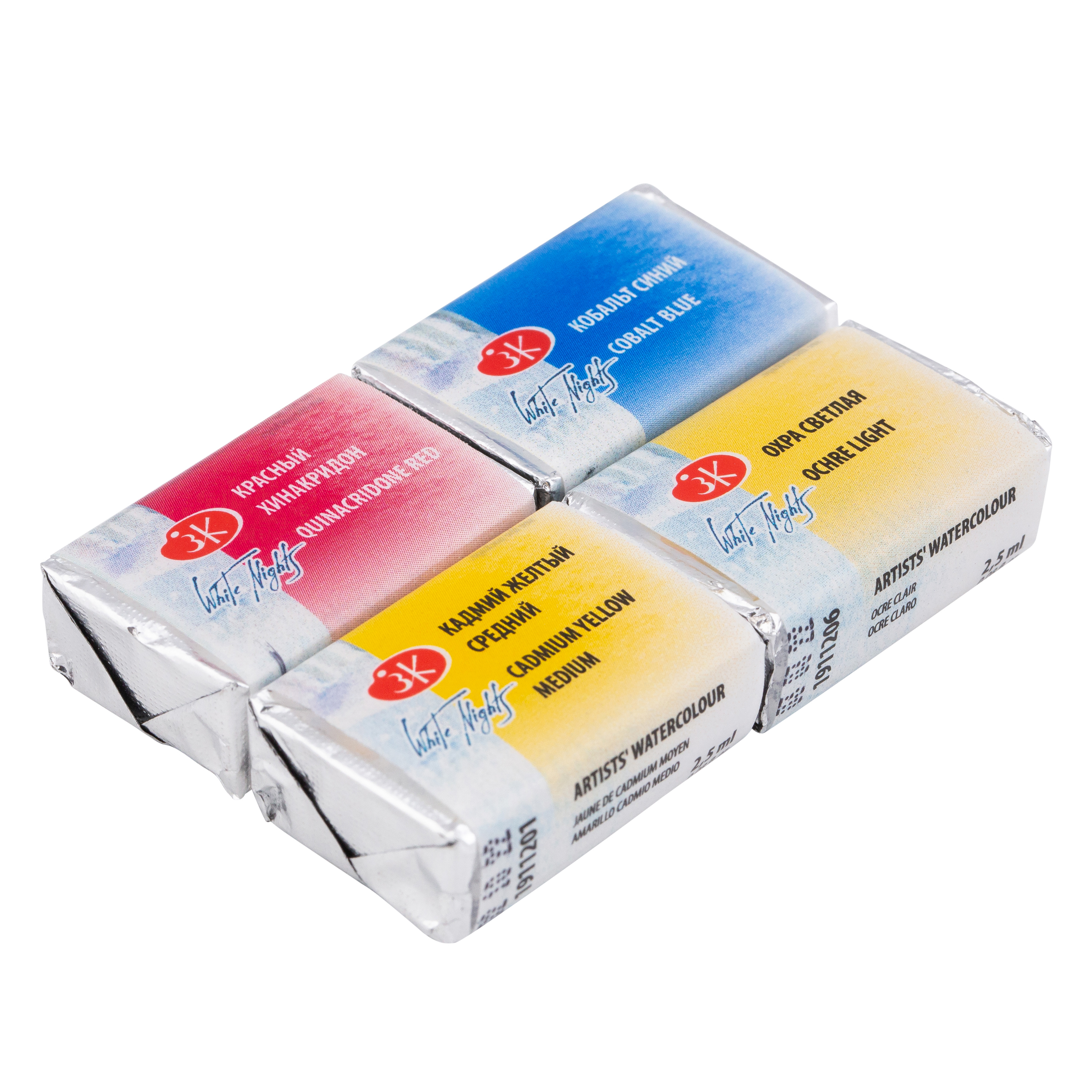 Акварель «Белые ночи» производится заводом художественных красок Невская палитра, расположенным в городе Санкт-Петербурге. Завод уже более 80 лет выпускает продукцию для профессиональных художников и любителей творчества. Акварель «Белые ночи» — визитная карточка завода, эти краски признаны профессиональными художниками и считаются одними из лучших среди отечественных акварелей. Акварель «Белые ночи» — краски, выпускаемые в полусухом виде в кюветах по 2,5 миллилитров. Акварель «Белые ночи» изготовлена из высококачественных тонко тертых пигментов и связующего с добавлением гуммиарабика. Цвета хорошо смешиваются между собой и легко размываются водой. Краска обладает высокой светостойкостью. Акварелью в кюветах можно заменить закончившиеся краски из набора, что очень удобно. Наборы акварели «Белые ночи» станут прекрасным дополнением к вашей палитре красок, в наборе 4 кюветы разных цветов.
