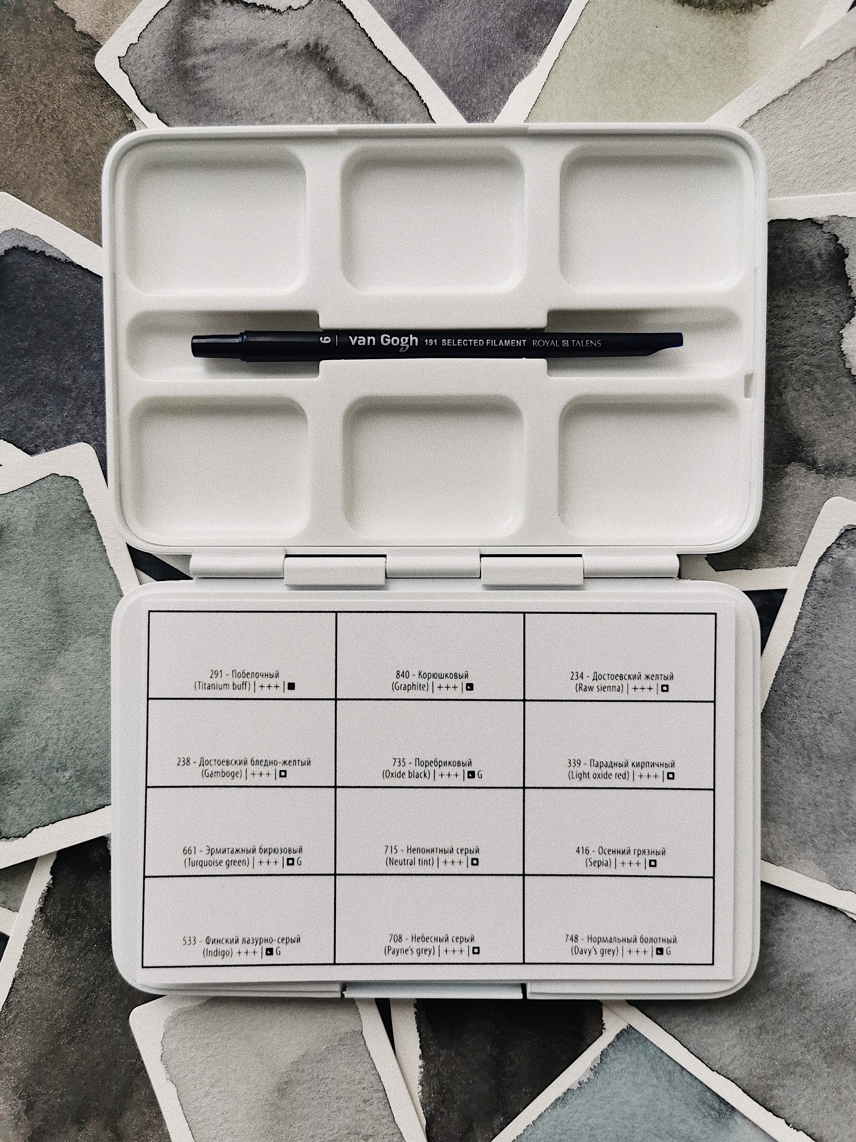 Да, теперь он существует! Перед вами набор акварели Van Gogh "Цвета Санкт-Петербурга". Тот самый, который мы придумали 1 апреля :) Мы прониклись вашим вниманием, тысячами репостов и комментариев и.... создали этот лимитированный набор специально для вас! Напоминаем, что приобрести такой набор можно только в России и только в Красном Карандаше. Мы тщательно подбирали подходящие оттенки и смешивали между собой всю палитру, перепробовав бесконечное количество комбинаций. Набор получился совершенно уникальным и в то же время универсальным. Мы продумали всё до мелочей и даже названия цветов у этого набора особенные: 291 - Побелочный (PW6/PBr7) 840 - Корюшковый (PW15/PW6/PBk11) 234 - Достоевский желтый (PY42) 238 - Достоевский бледно-желтый (PY154/PR101) 735 - Поребриковый (PBk11) 339 - Парадный кирпичный (PR101) 661 - Эрмитажный бирюзовый (PB15/PB29) 715 - Непонятный серый (PBk6/PV19) 416 - Осенний грязный (PBk7/PR101) 533 - Финский лазурно-серый (PB15/PBk6) 708 - Небесный серый (PBk6/PV19) 748 - Нормальный болотный (PBk11/PG7/PBr7) Глубокие благородные цвета при смешивании рождают самые необычные фактуры и смелые сочетания — потрескавшаяся стена, ледяная вода, искрящийся снег, мокрый асфальт или блестящая чешуя. Всё это в сочетании с компактной упаковкой, крышкой-палитрой и складной кистью делают его идеальным компаньоном для путешествий, пленэров и легких городских зарисовок. Надеемся, что вы получите огромное удовольствие от этого долгожданного набора и творческого процесса — наслаждайтесь :)