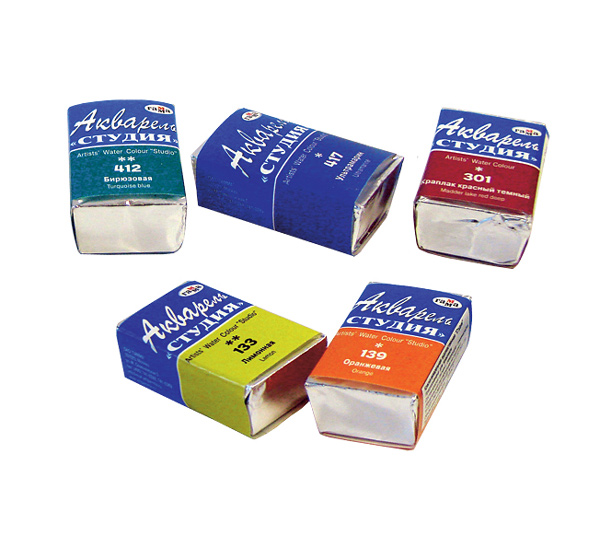 О серии: акварельные краски «Студия» - это художественные краски с большой концентрацией пигментов. Краски пользуются популярностью у широкого круга потребителей. В серию входит 63 цвета. Все цвета выпускаются в полусухом виде в кюветах по 3,5 миллилитра и в полужидком виде в тубах по 9 миллилитров. Производство: выпускаются российской компанией «Гамма», которая уже более 100 лет экспериментирует с пигментами, производит художественные краски и другие товары для творчества. Характеристика: краски хорошо размываются. Имеют насыщенные цвета. Не желтеют с течением времени. Применение: для художественных работ. Подходит для любителей, учащихся и художников.