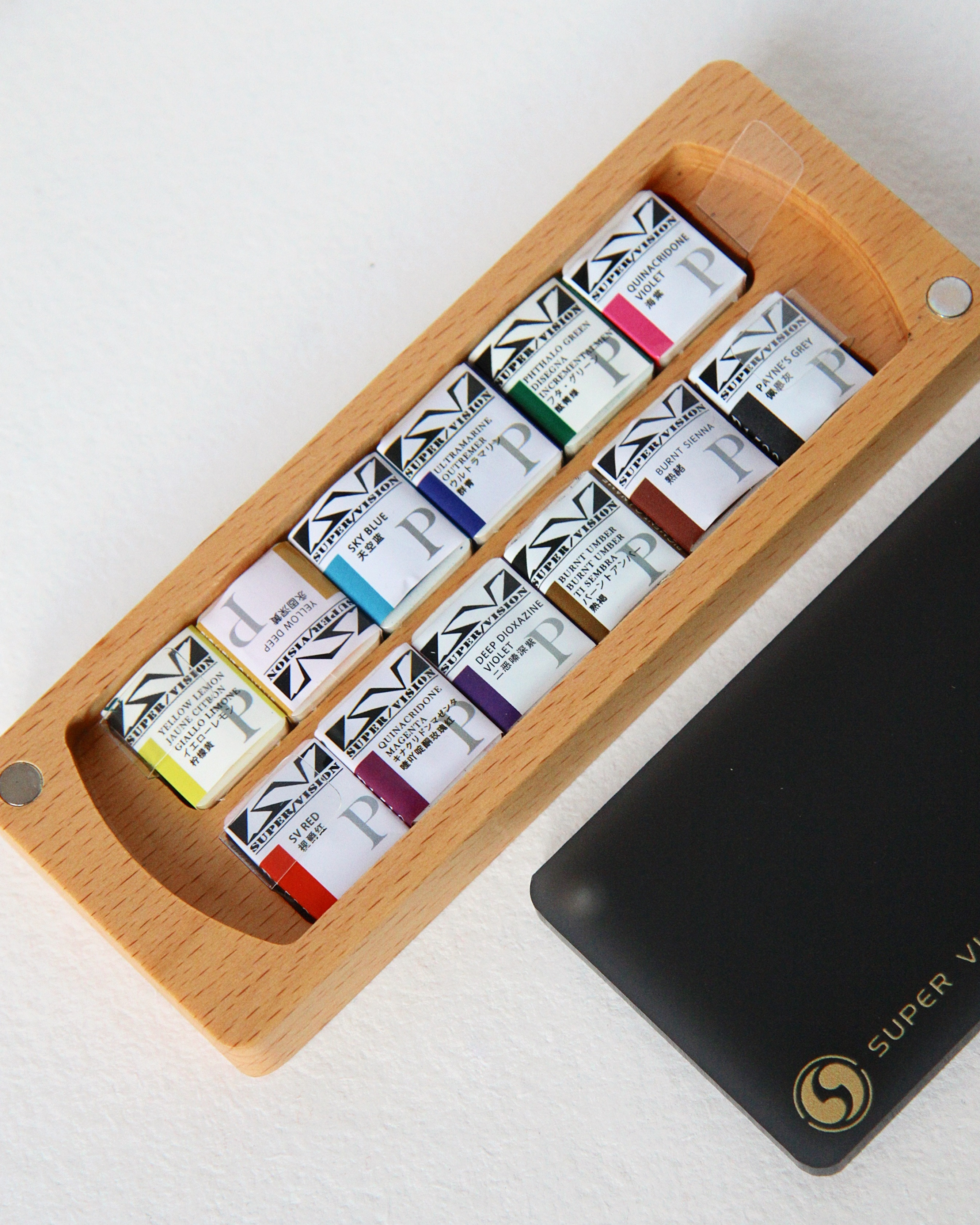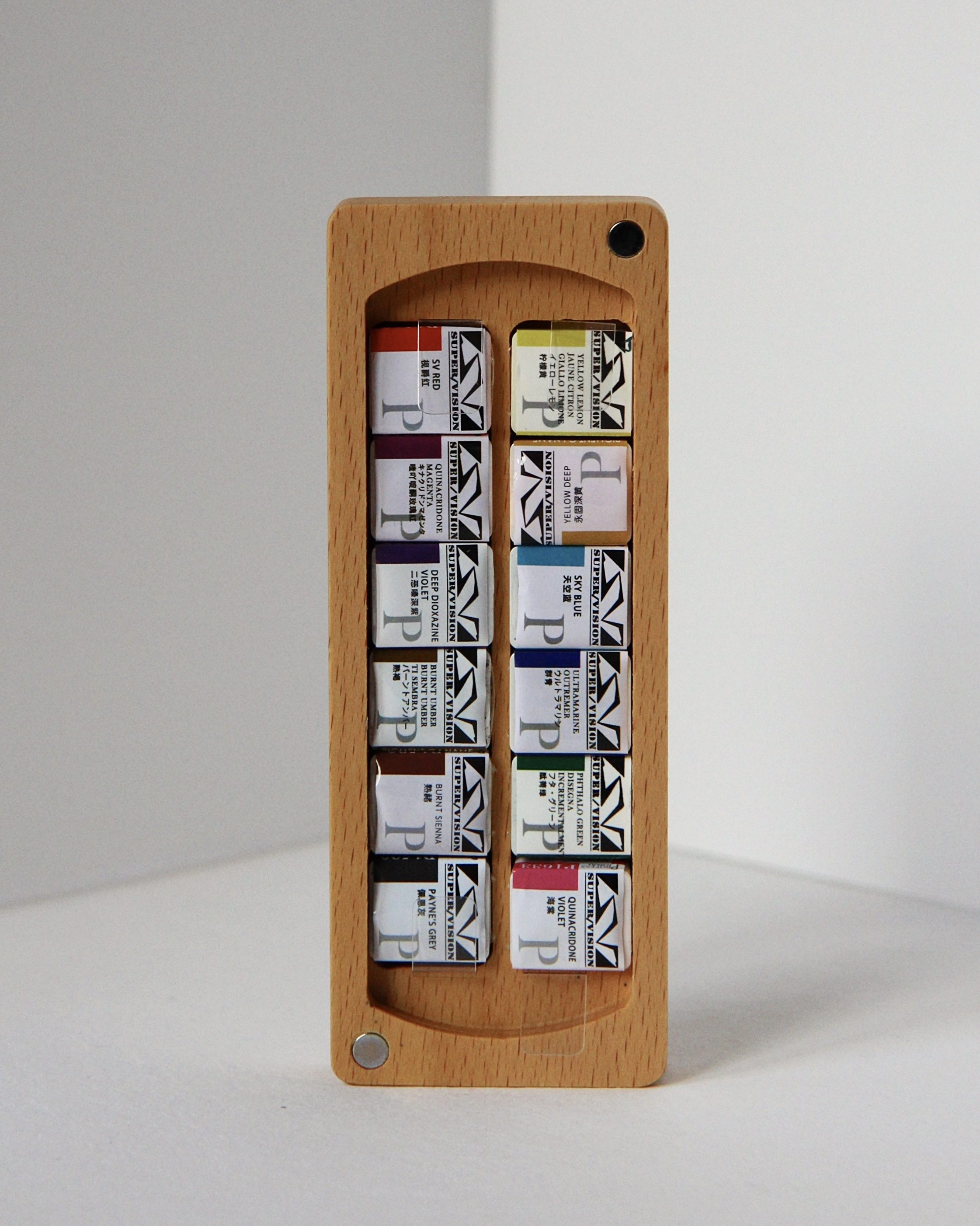 Этот набор профессиональной акварели Super Vision создан совместно Китайской Академией Изящных Искусств. Внутри набора 12 цветов профессиональной, прозрачной и светостойкой акварели в кюветах в классической цветовой палитре. Богатый опыт Академии Искусств позволил создать практичную подборку оттенков, способных передать любой сюжет и удовлетворить любые потребности художников со всего мира. В отличие от плотной китайской акварели, эта линейка очень прозрачна, благодаря чему идеально подходит для техники лессировки. Акварель произведена из высококачественных пигментов и связующего, обладает хорошей адгезией, проникая прямо в текстуру бумаги. Все цвета отлично смешиваются между собой, позволяя создавать новые оттенки. Набор поставляется в стильном деревянном кейсе с матовой крышкой на магнитах. В наборе 12 цветов профессиональной акварели Super Vision, выкраску цветов в наборе вы можете увидеть в дополнительных фото.