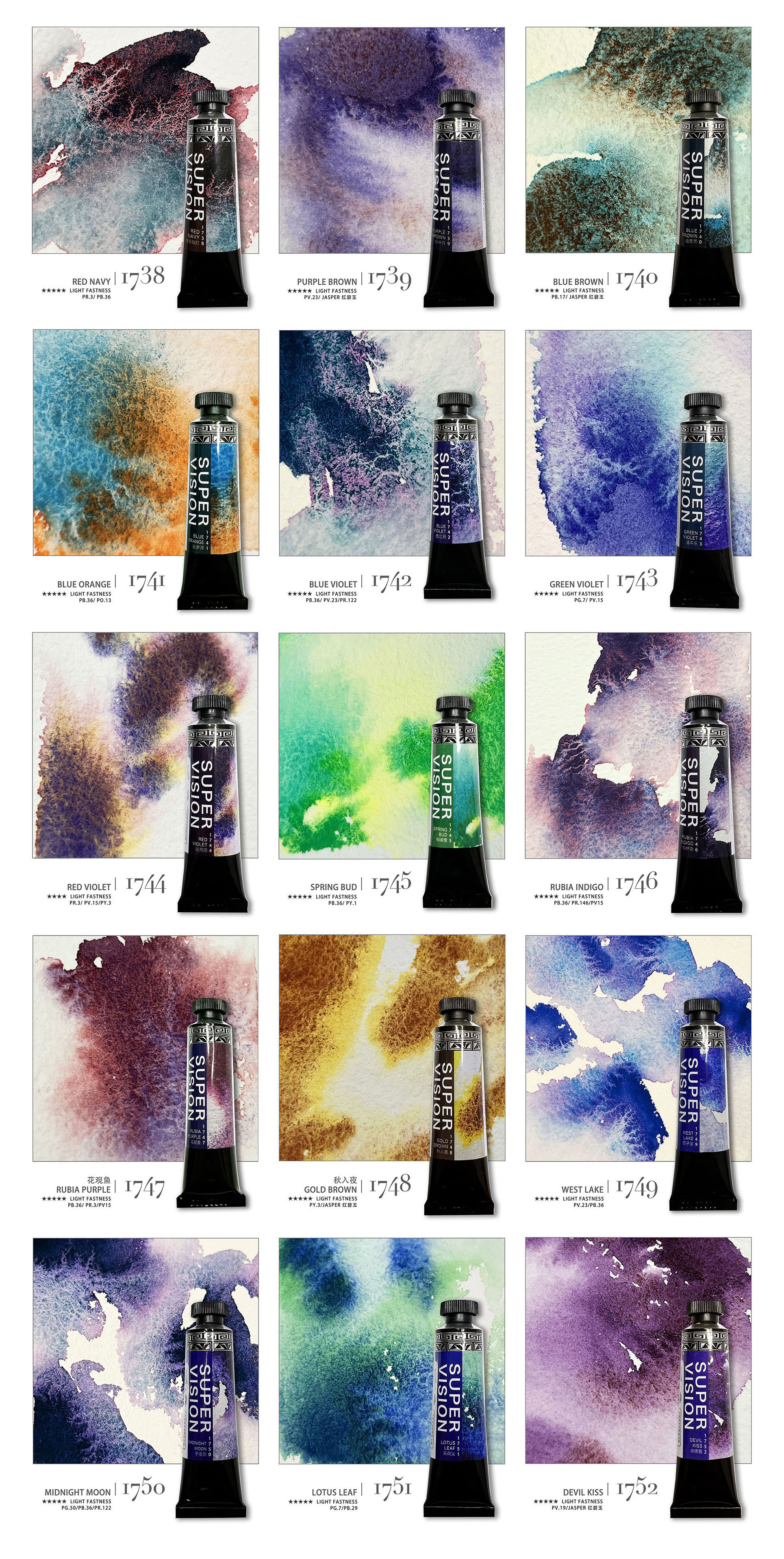 Акварельные краски Super Vision серии Watercolor layered обладают неповторимым эффектом грануляции, благодаря сложному пигментному составу и разной величине частиц, краска из одной тубы может распадаться на 2 или 3 цвета, создавая эффект многослойности. Уникальные свойства акварели линейки Watercolor layered лучше всего раскрываются в технике «по-сырому», при достаточном количестве воды часть пигмента выпадает в осадок, а другая часть сохраняет размытость оттенка, свойственную акварели. Таким образом каждая краска распадается на несколько оттенков или может состоять из кардинально разных цветов, что позволяет создавать непревзойдённые эффекты в ваших акварельных работах. Несмотря на особенности грануляции, все цвета акварели можно смешивать между собой, создавая новые многослойные сочетания. *В составе некоторых цветов используются красители растительного и животного происхождения, такие краски обладают уникальными цветовыми комбинациями, но при этом очень чувствительны к воздействию света. Состав набора в виде выкраски вы можете посмотреть в дополнительных фото.