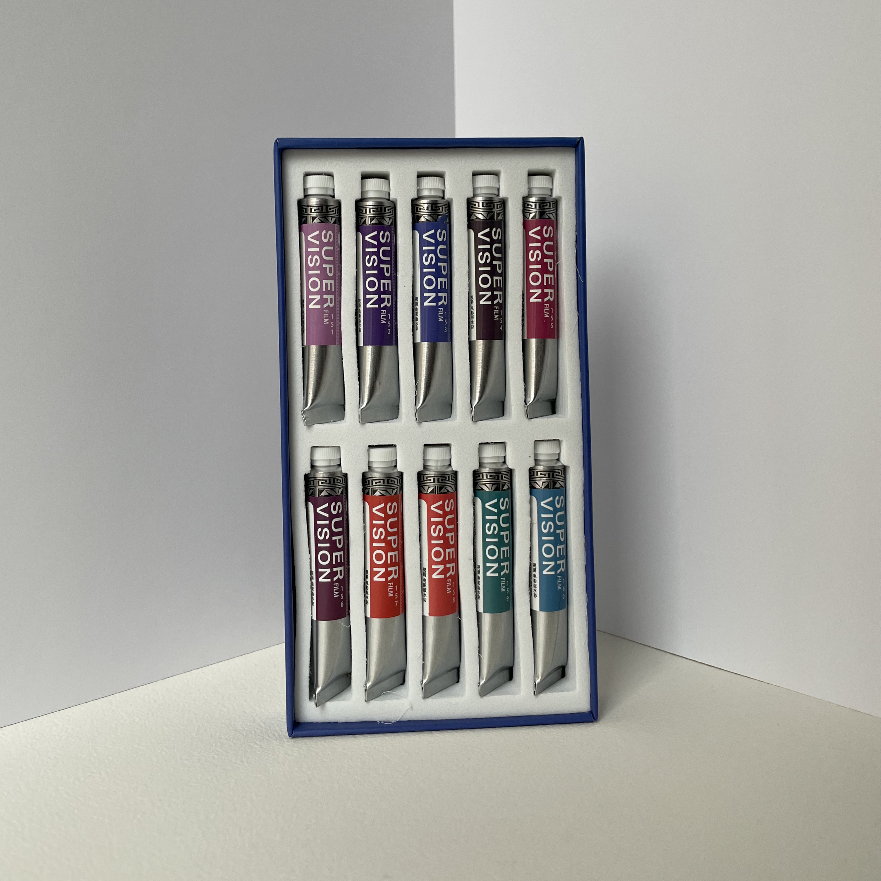 Линейка наборов акварели Film Edition Watercolor от бренда Super Vision вдохновлена эстетикой кино. Каждый набор содержит палитру из 10 цветов акварели отражающих различные цветовые эмоции того или иного жанра, стиля или киносюжета. Так, сочетая современное и традиционное цветовое решение, была разработана серия акварельных красок для подбора цвета киноплёнки. Все цвета акварели по прежнему отвечают самым высоким требованиям художников различного уровня, они созданы на основе высококачественных пигментов и гуммиарабика, гарантируя насыщенность и чистоту цвета, а также безупречную адгезию для безграничных возможностей в технике по-сырому. Серия представлена наборами различной комплектации.