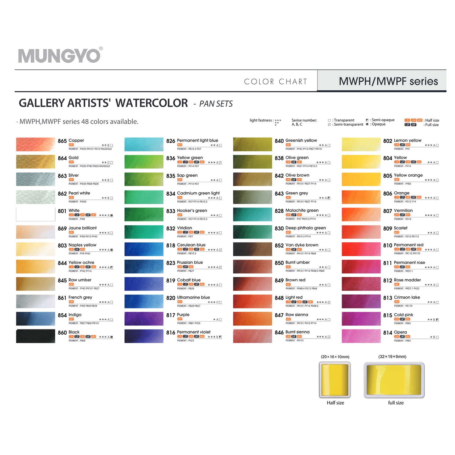 О серии: акварель Mungyo "Gallery" создана из пигментов тончайшего помола и высококачественного гуммиарабика без добавления примесей, что обеспечивает чистоту и насыщенность цвета каждой краски. Цвета отлично смешиваются между собой позволяя проявлять мастерство и чувство цвета без ограничений. Наборы поставляются в в металлических пеналах, которые удобно брать с собой в путешествие или на пленэр. Поставляются в наборах различной комплектации и поштучно. Применение: для живописных работ в акварельных и смешанных техниках. Производство: изготавливается компанией Munguo, которая была основана в 1946 году. С момента основания компания производит материалы для творчества. Изначально компания делала товары для школ и начинающих художников-студентов, но затем инженеры и химики компании начали творить и создали практически идеальные сочетания пигментов и связующих, которые легки в основу современных профессиональных материалов.