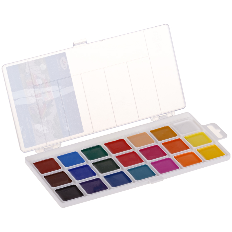 Медовая акварель в обновленной подложке: больший объем краски в кюветах — больше возможностей для творчества. Благодаря качественному прозрачному связующему в составе, цвета акварели яркие и чистые. Увеличенное расстояние между кюветами, чтобы краски не смешивались во время рисования. Если нужно получить новый оттенок, на крышке предусмотрена палитра. Отделение для кисти с удобными зонами захвата?– ребенок сможет быстро достать кисть, не переворачивая подложку. Удобный замок и прочные петли плотно фиксируют крышку.