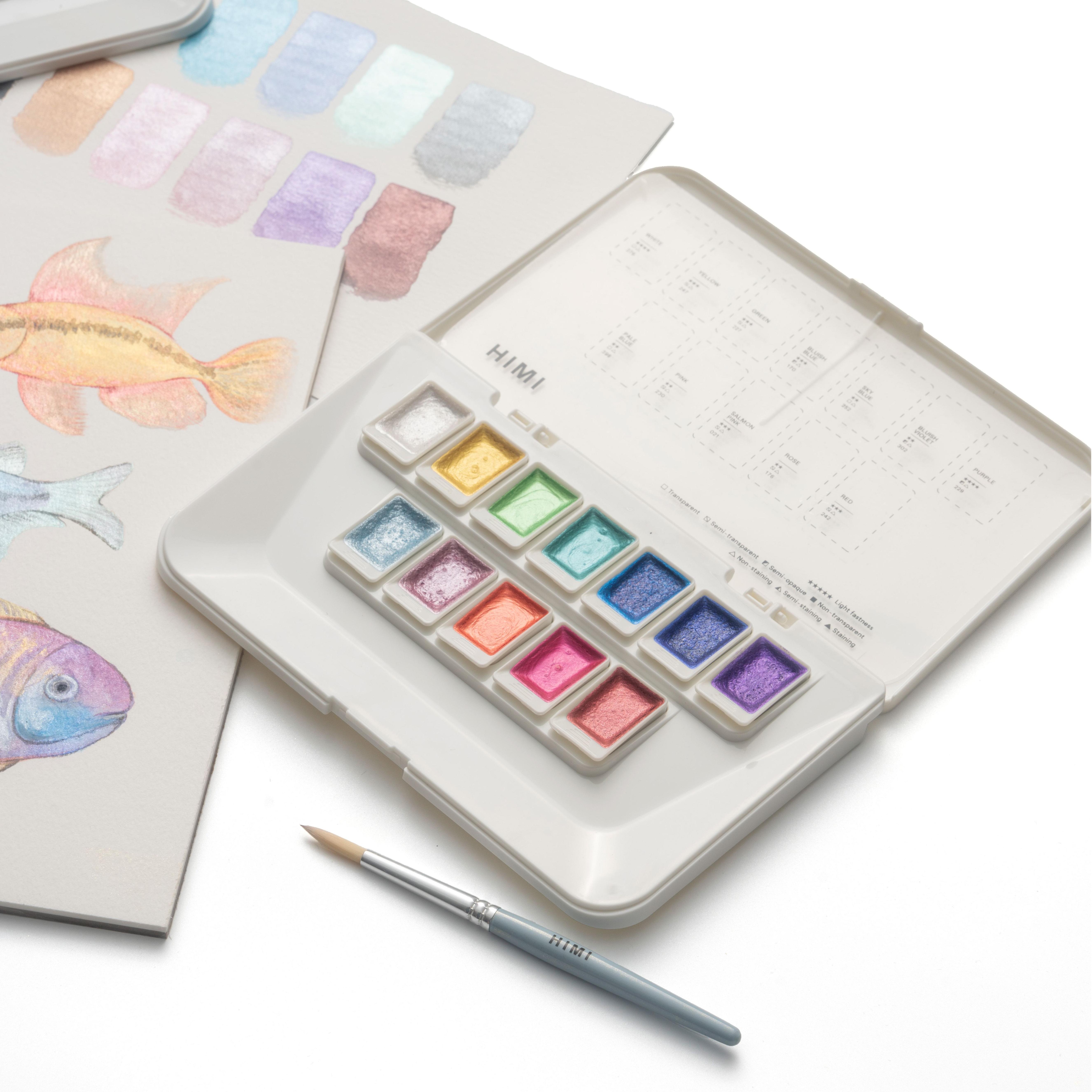 Набор акварельных красок HIMI "Металлик" с 12 оттенками драгоценных камней станет настоящим сокровищем для любого художника. Эти краски создадут на ваших полотнах неповторимый мерцающий эффект, добавив глубину и сияние вашим работам. От нежных пастельных тонов до ярких, насыщенных оттенков, этот набор позволит воплотить в жизнь самые смелые творческие идеи. Идеально подходит для акварельной живописи, каллиграфии и других видов декоративно-прикладного искусства. Особенно красиво раскрываются на черной бумаге или при использования на готовой работе для усиления цвета и придания элегантного мерцания. Краски созданы по уникальной технологии производства и с использованием тонко измельчённых пигментов из минералов слюды.