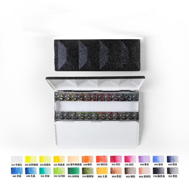 Акварельные краски серии Paul Rubens изготовлены с использованием высококачественных пигментов и связующих компонентов. Высокое содержание пигментов и красителей обеспечивают яркие и насыщенные цвета, особенно хорошо проявляют себя на хлопковой бумаге, проникая в структуру листа. Все цвета хорошо смешиваются между собой, позволяя создавать новые оттенки и градиенты. Набор акварели Paul Rubens поставляется в кюветах в удобном металлическом пенале с откидной палитрой — идеально для путешествий и пленэров. Дизайн коробки для акварели серии Gem вдохновлен текстурой натуральных драгоценных камней. Металлическое кольцо под корпусом удобно держать одной рукой.