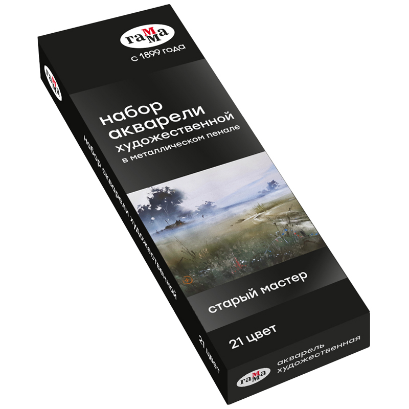 Акварельные краски профессиональной серии "Старый мастер" разработаны в собственной исследовательской лаборатории завода. Краски изготовлены на основе органических и неорганических пигментов и гуммиарабика высшего качества. Цвета акварельных красок звонкие, чистые, прозрачные. Краски высокопигментированные, интенсивные, легко набираются на кисть. Маркировка светостойкости, колор-индекса и укрывистости указана на упаковке. Набор в металлическом пенале с удобными креплениями кювет, палитрой и кольцом-держателем на обратной стороне. Иллюстрация для упаковки предоставлена Ильей Ибряевым.