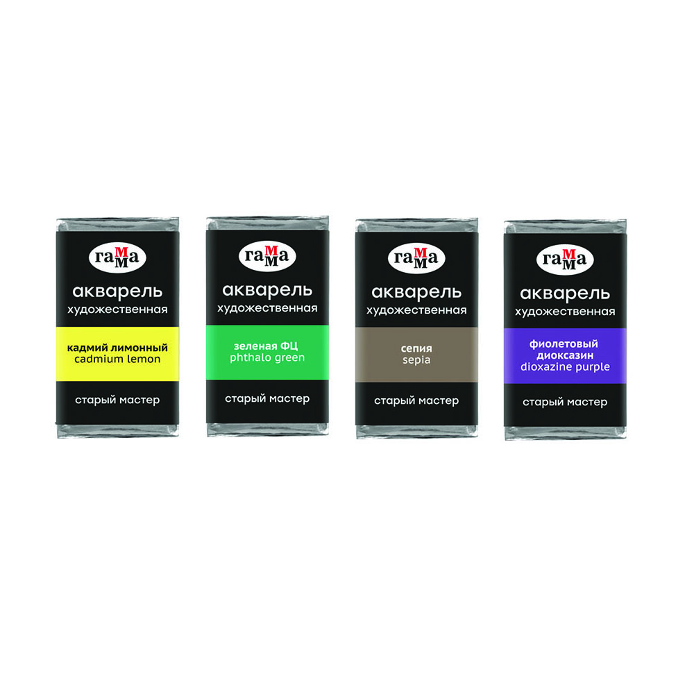 Рецептура профессиональных акварельных красок серии "Старый мастер" разработана в собственной исследовательской лаборатории завода. В составе красок гуммиарабик высшей степени очистки и высококачественные пигменты, которые обеспечивают насыщенность цветов, чистоту и прозрачность красочного слоя. Все цвета отлично смешиваются между собой, позволяя создавать новые оттенки. Полная палитра серии представлена 70 цветами. Объем кюветы 2,6 мл.