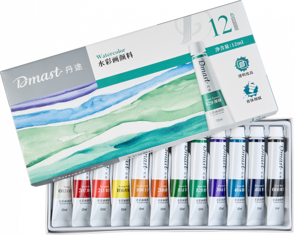Акварель Dmast произведена из натурального гуммиарабика и пигментов тончайшего помола — размер частиц менее 1 микрона. Краски Dmast имеют чистые прозрачные цвета и высокую светостойкость. Каждая партия проходит экспертизу в лаборатории цвета на соответствие эталону. Упаковка набора произведена из прочного картона с покрытием Soft-touch. Внутри упаковки пластиковые подложки для раздельного хранения туб и легкого доступа к ним. Тубы произведены из плотного пластика с удобной крышкой. Продукция бренда Dmast создана благодаря сочетанию высокого качества выверенных технологий бренда Pebeо и инновационным производственным процессам компании Deli — крупнейшего производителя канцелярских товаров в Азии.