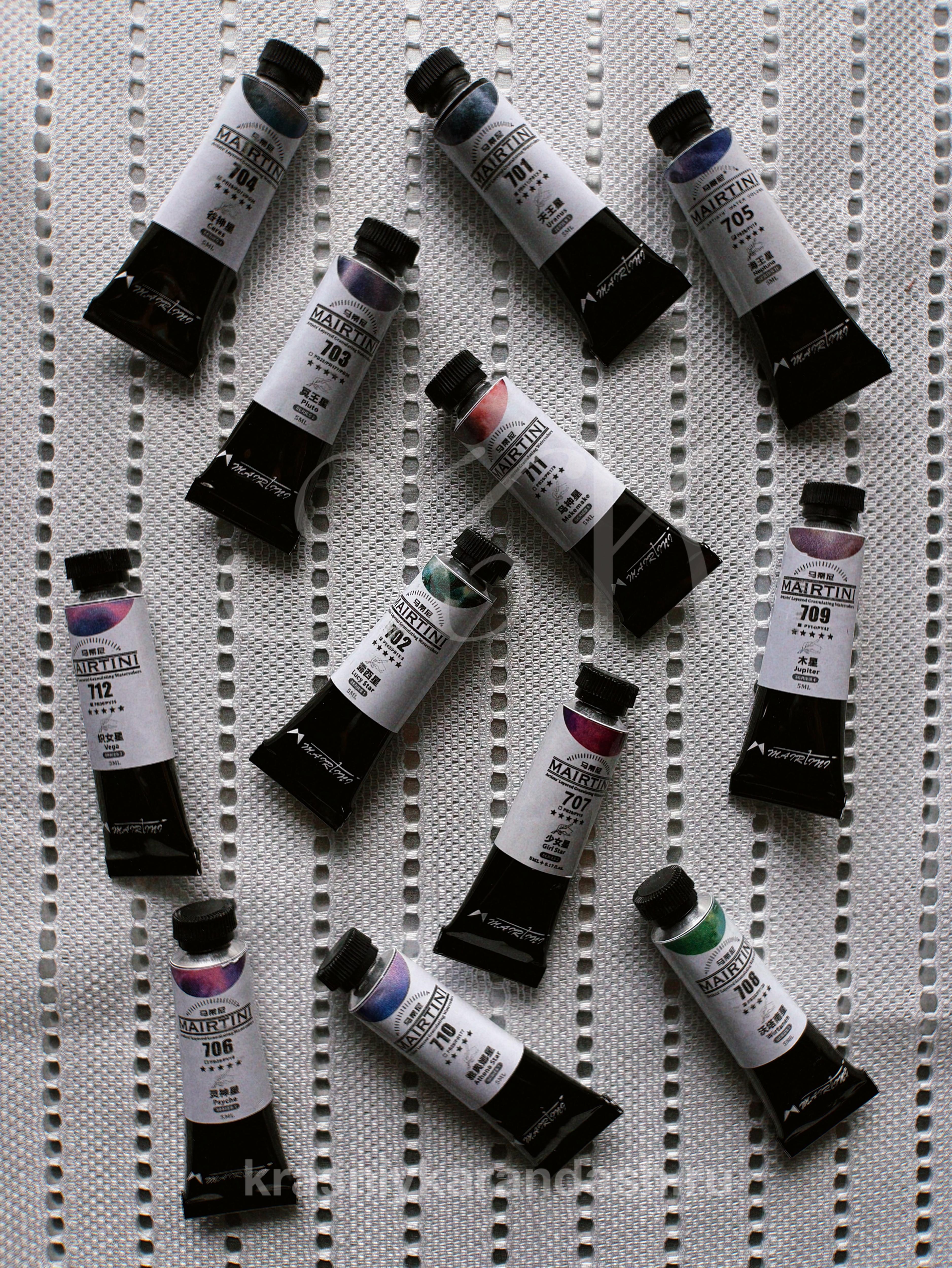 Mairtini Artists' Layered Granulating — линейка художественных акварельных красок с выраженным эффектом грануляции. В производстве используются высококачественные пигменты, что обеспечивает яркость, насыщенность и чистоту оттенков. Особенность серии — активное «оседание» пигмента в фактуре бумаги, благодаря чему краски формируют слоистые переходы, живую текстуру и особую глубину изображения. Палитра прозрачна и богата по цвету, идеально подходит для многослойной живописи, атмосферных пейзажей, фактурных заливок и тонких экспериментов с цветом. Artists' Layered Granulating открывает художнику возможность создавать работы, в которых цвет сам становится выразительным художественным приёмом.