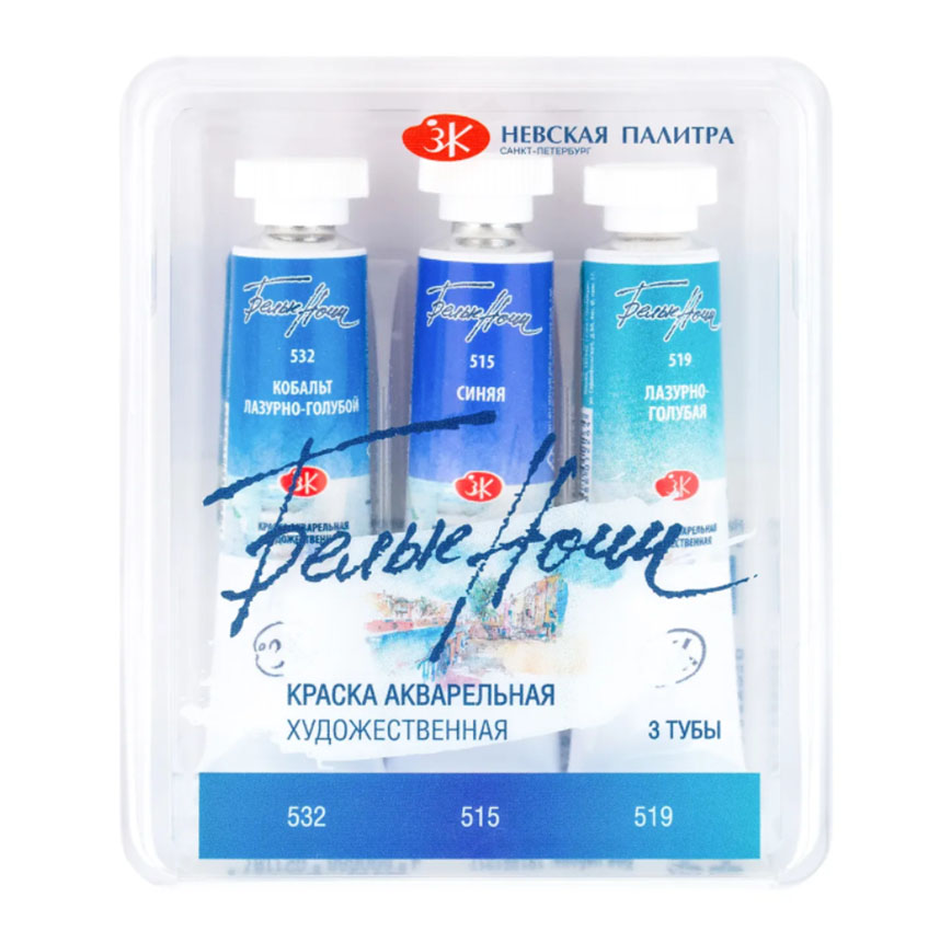 Художественные акварельные краски «Белые ночи» изготавливаются из тонкотертых пигментов и связующего из натурального гуммиарабика, признанного лучшим растительным клеем для приготовления художественных водных красок. Максимальная интенсивность цветового тона акварели, сохраняющаяся даже при разбавлении большим количеством воды, достигается благодаря высокой концентрации пигмента и тонкости его перетира. Такие свойства, как яркость и чистота цвета, высокая светостойкость, прекрасная разносимость и прозрачность сделали акварель ЗХК любимыми красками нескольких поколений живописцев.